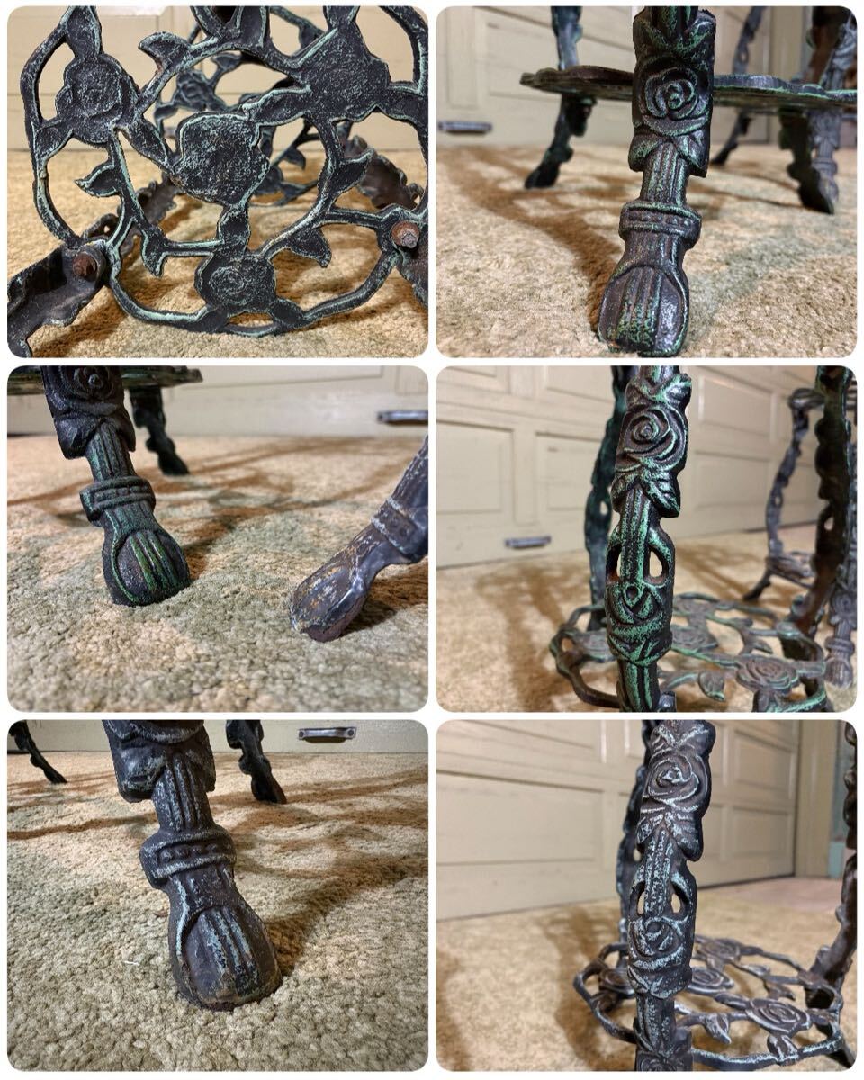 K3 アイアン製 フラワースタンド 花台 【1個からの出品】鋳鉄 アンティーク調 プランタースタンド バラ模様 2段 インテリア◎