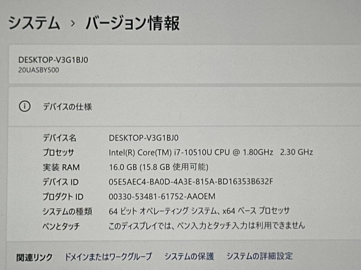 商品名 【バッテリー良好♪】美品/Lenovo ThinkPad X1 Carbon Gen8[10世代/Core i7 10510U 2.3GHz/RAM:16GB/SSD:512GB/14インチ] Office 動作品