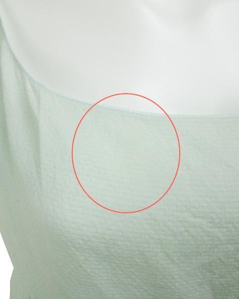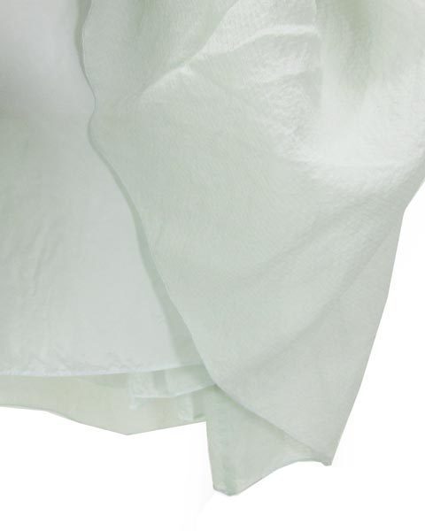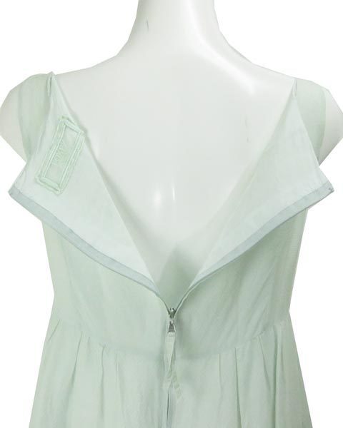 | フォクシーらしい上品な AMALFI ドレス。シアーなシフォン素材で、エアリー感があります。淡いグリーンで華やかに着て頂けます。春先から秋口のお出かけやリゾート地でのお召し物におすすめです。 |