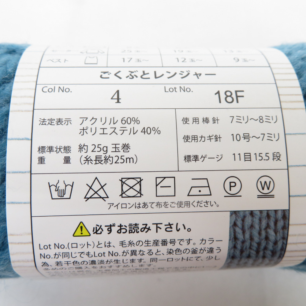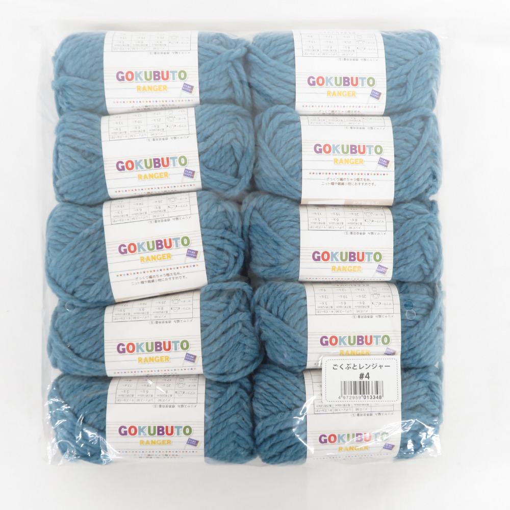 | 毛糸 ごくぶとレンジャー 10玉セット 1玉25g 約25m Col No.4 ブルー系 ごしょう産業 未使用品 |