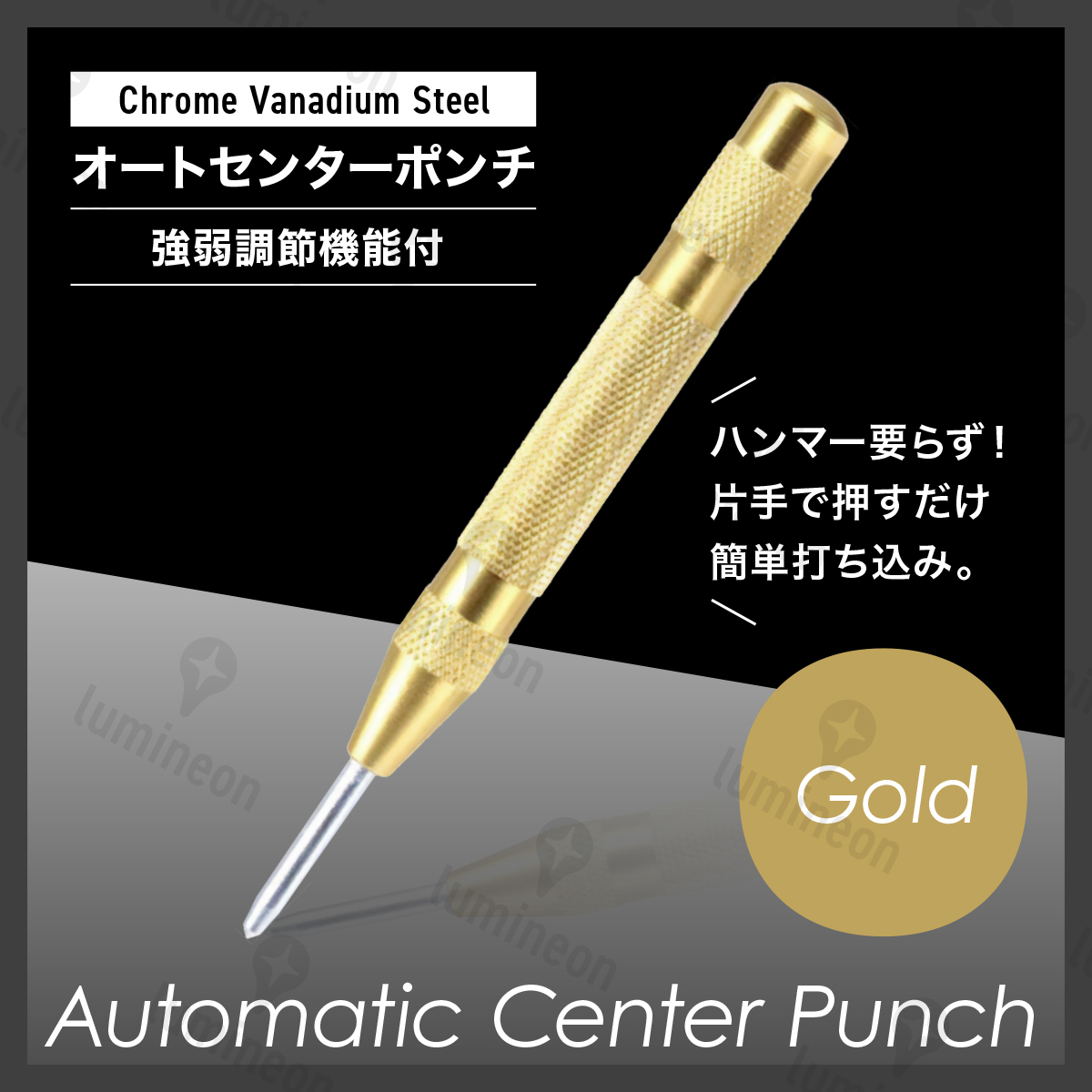 ■ハンマー不要で片手で押し込むだけで簡単に打ち込み可能なオートセンターポンチ。