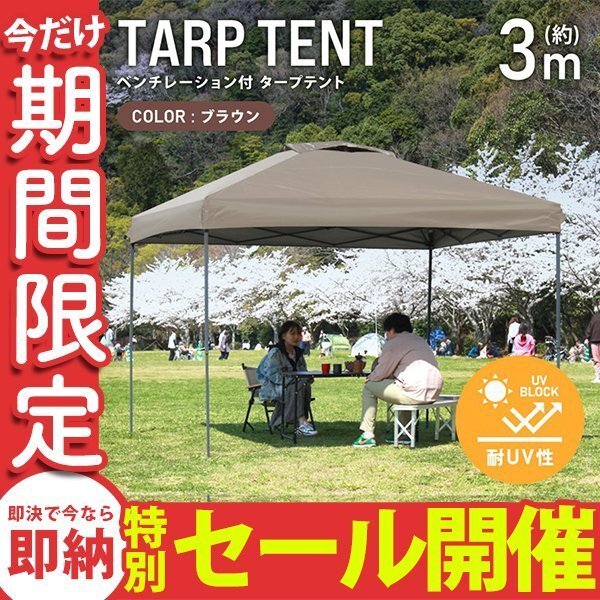 | 強い日差しでもこの3m×3mのタープテントは快適な日陰を作ってくれます! |