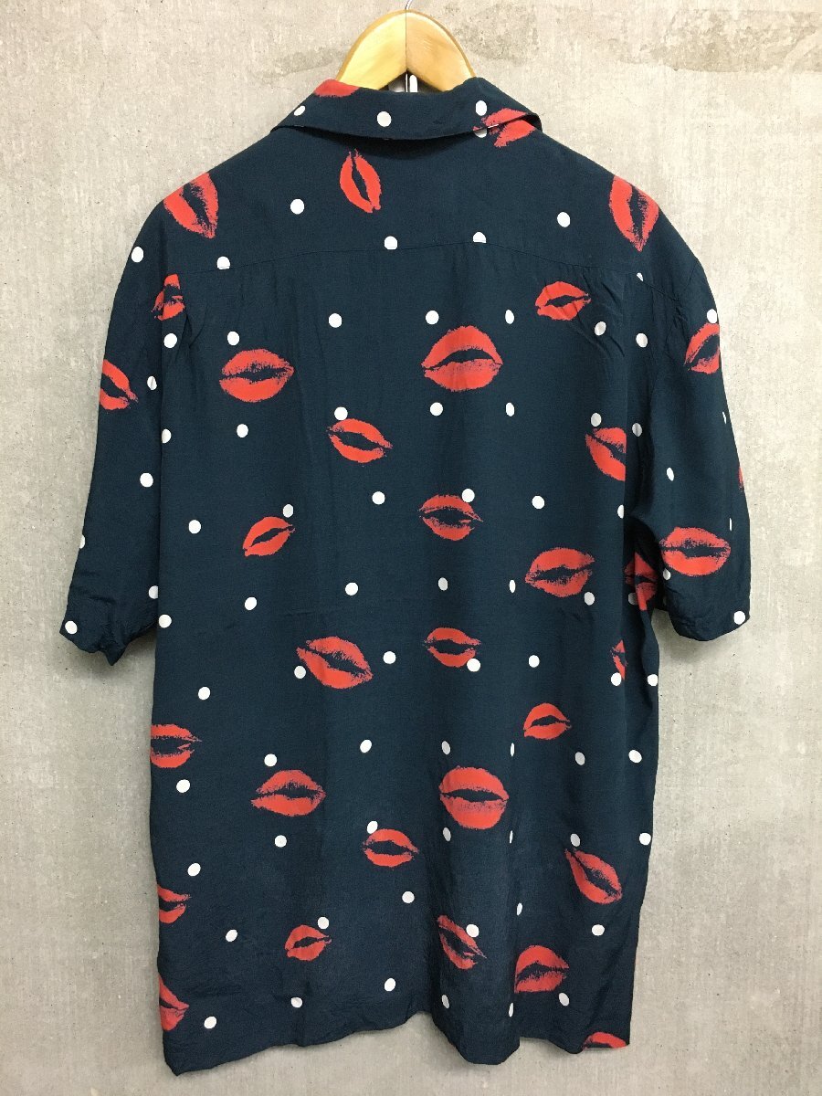 ◆ ◆Aloha Blossom   アロハブロッサム キスマーク リップ&水玉 ポケット付き アロハシャツ ネイビー サイズ44