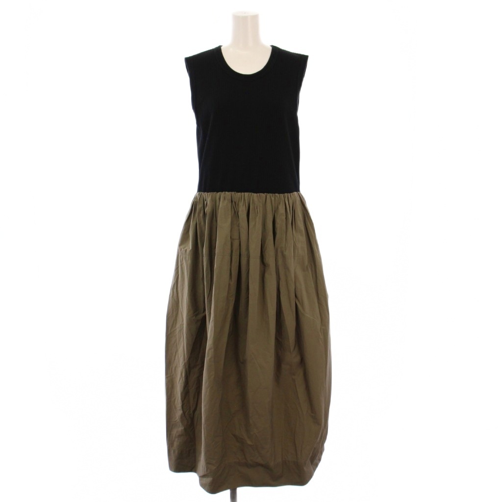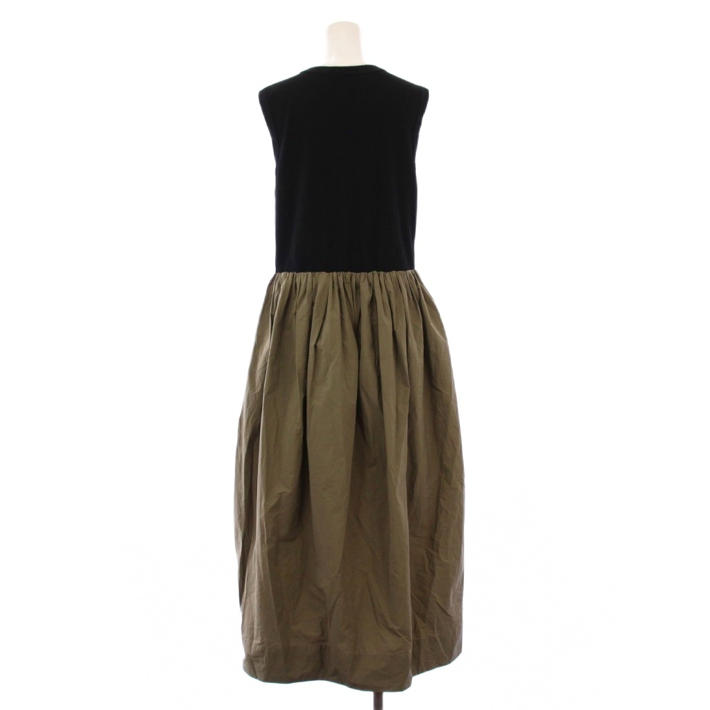 アイシービー iCB 24SS リブコンビタイプライターワンピース フレア マキシ ロング ノースリーブ クルーネック 切替 M 黒 カーキ