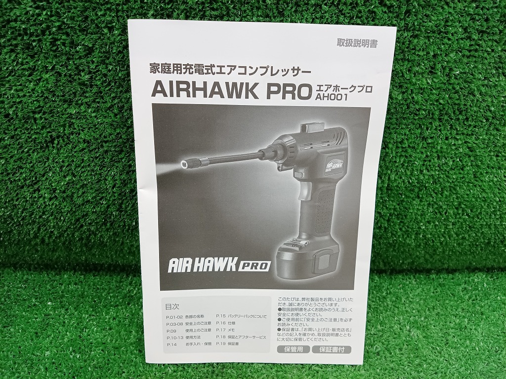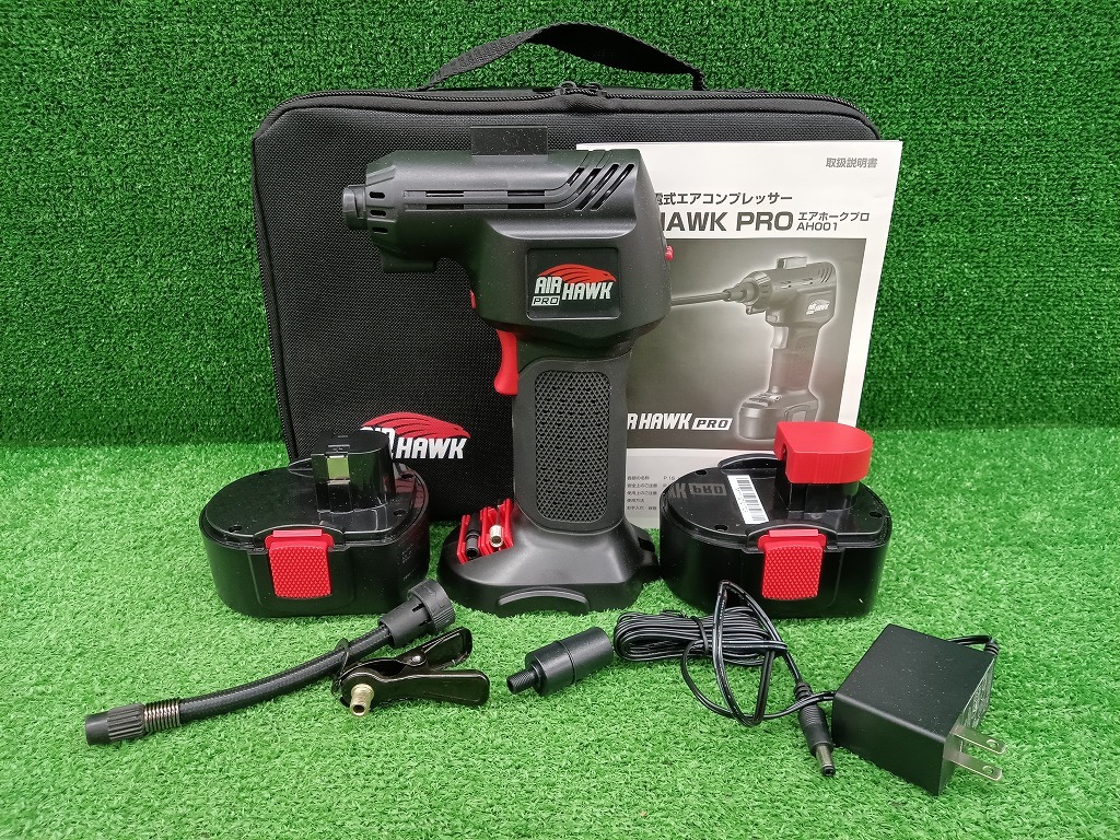 未使用品 11.1V 1.5Ah 電動空気入れ エアホークプロ AH001 バッテリー2個 充電ケーブル付き 家庭用充電式エアコンプレッサー