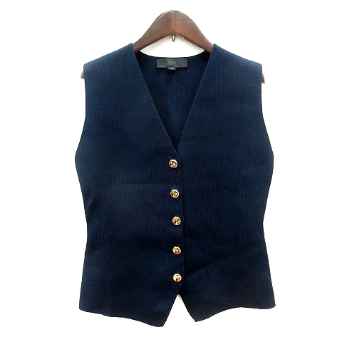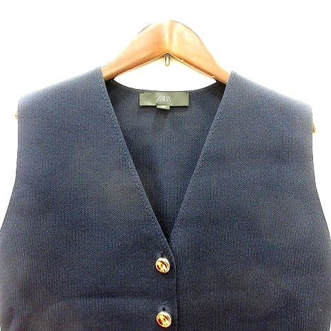 ザラ ZARA ベスト ニット 前開き M 紺 ネイビー /MN レディース