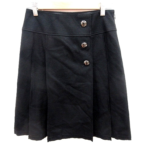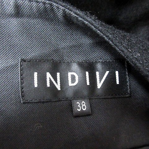 インディヴィ INDIVI スカート フレア ひざ丈 ウール 38 黒 ブラック /RT レディース