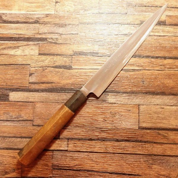 柳刃包丁は、刺身を一方向に引いて切ることで美しい断面を作る和包丁です。安心の関孫六ブランドの本鋼のお品です。柄に少しでこぼこした部分がありますが、問題なくお使いいただけますし、どうしても気になれば和包丁は柄の交換も簡単なので交換すれば全く問題ないでしょう。