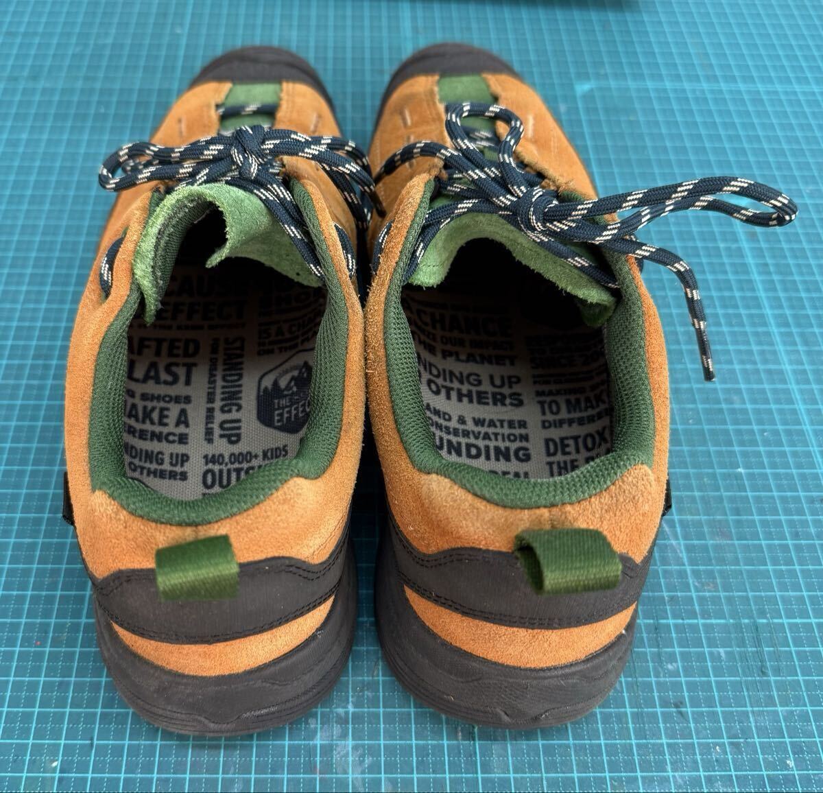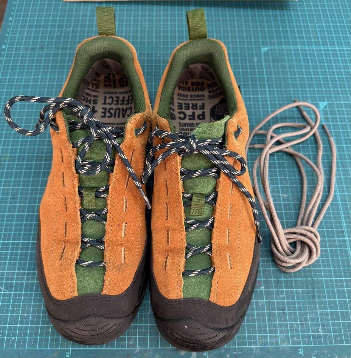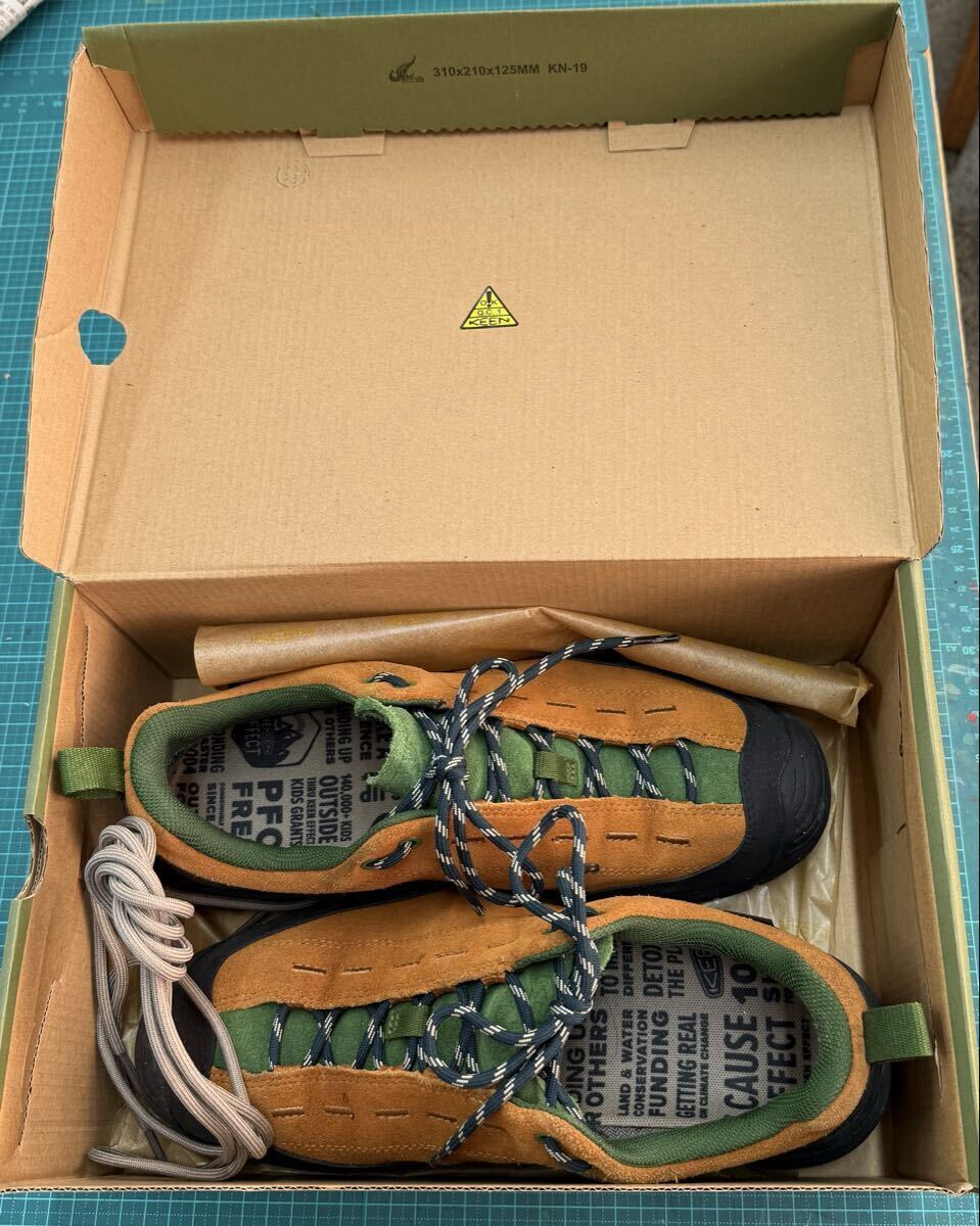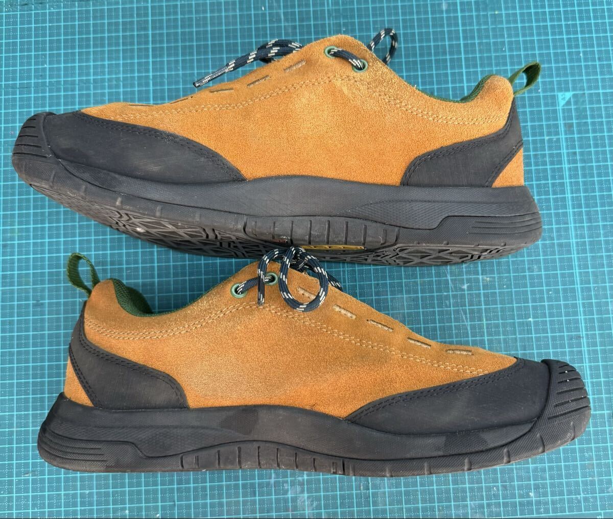 大地をがっちりグリップするKEENオールテレインラバーアウトソール、踏み跡を残さず、耐摩耗性とグリップ性に優れたノンマーキング仕様