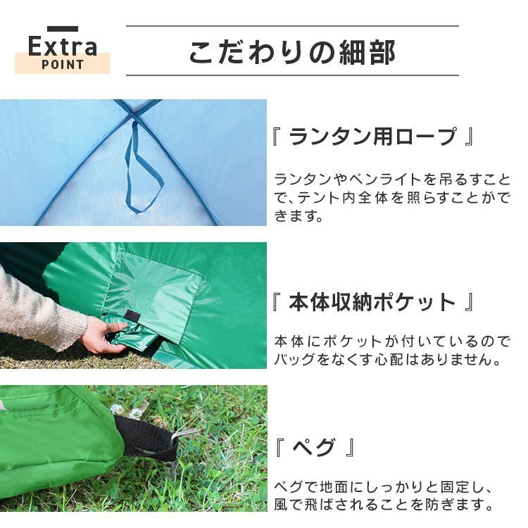 | ビーチやピクニック、アウトドアにも最適なポップアップテントです。 視線をシャットアウトするフルクローズ仕様! 強い日差しの下でも紫外線から守る遮熱コート生地採用! ワンタッチでラクラク! 設置はパッと開くだけの組み立て不要!女性でも簡単に設置することができます。 使わない時は折りたたんでコンパクトに収納!キャリーバッグ付きなので、持ち運びもラクラク♪ 海水浴、プール、運動会、釣り、アウトドア等で大活躍の日よけテント、天体観測にもおすすめです。 【商品仕様】 カラー:ネイビー サイズ: ・使用時(約):幅140cm×奥行120cm×高さ113cm ・収納時(約):幅48cm×奥行48cm×厚さ4.5cm 重量(約):1kg 材質:ポリエステル 他 【商品内容】 テント本体、ペグ×4本、キャリーバッグ |