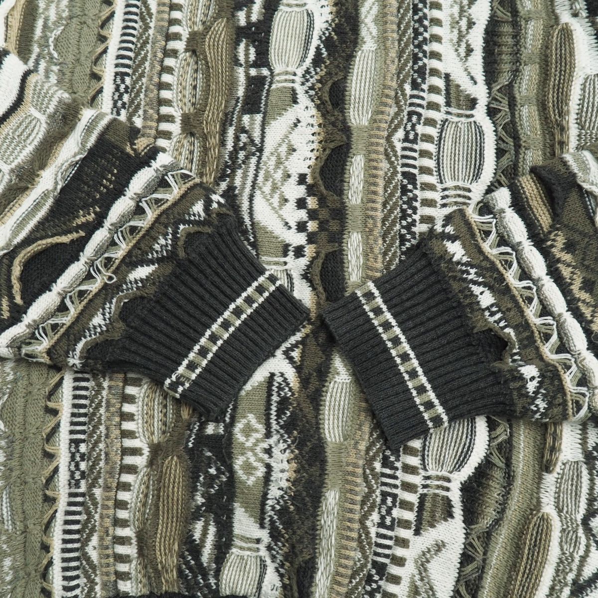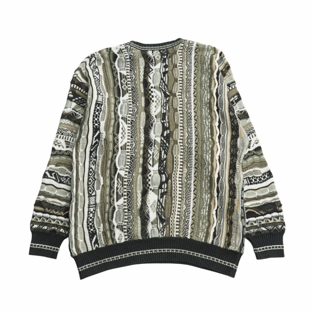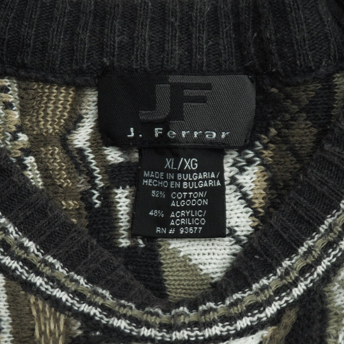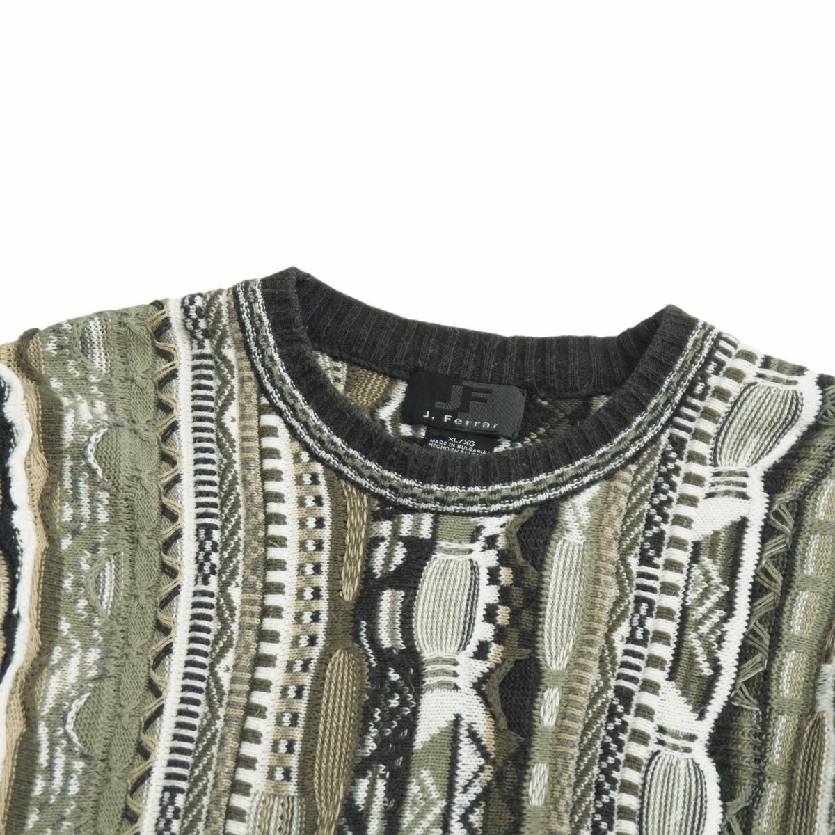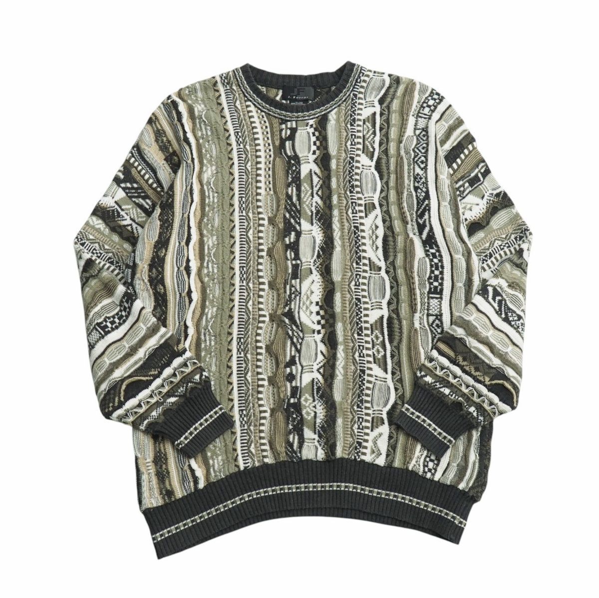 | TJ6698▽JF J. Ferrar メンズXL 3Dニット 総柄 クルーネック セーター カーキ×グレー×ホワイト系 | |||