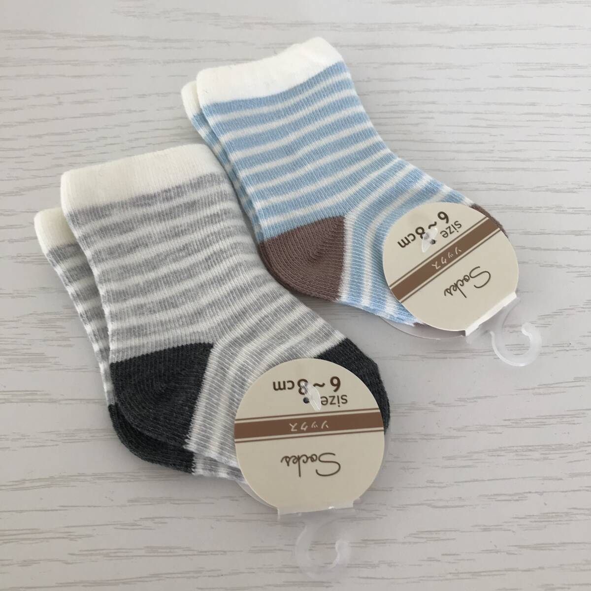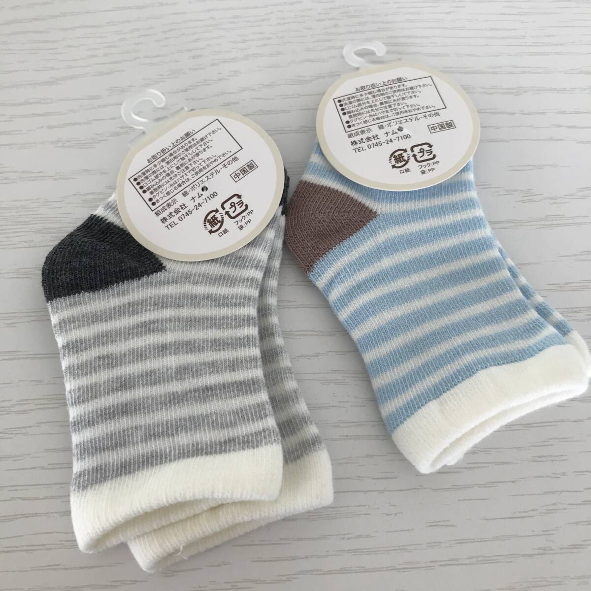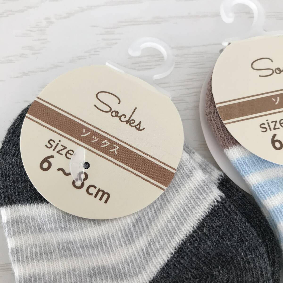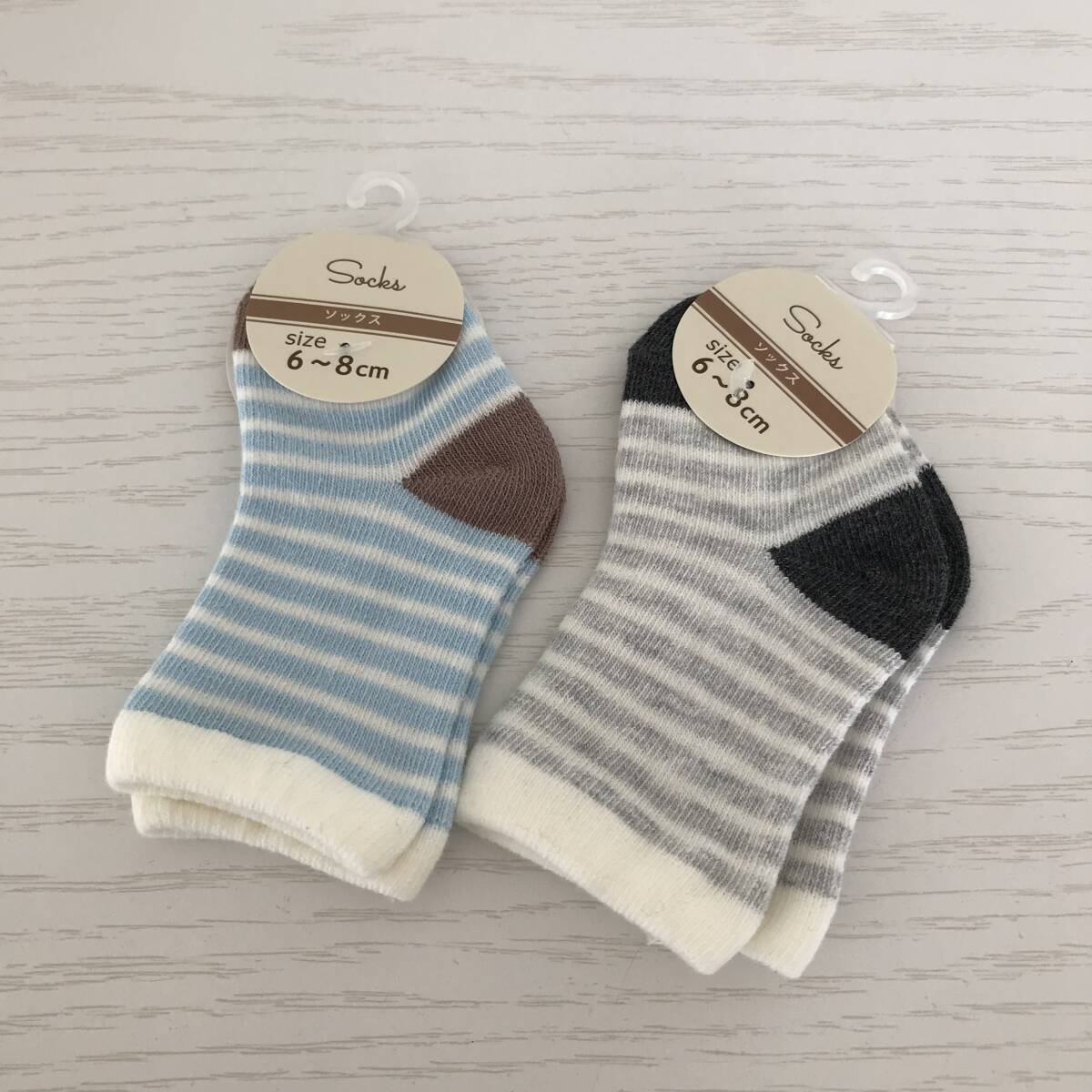 新品未使用■ベビーソックス■子供用靴下■ボーダー2足セット■グレーブルー■6~8cm | |||
