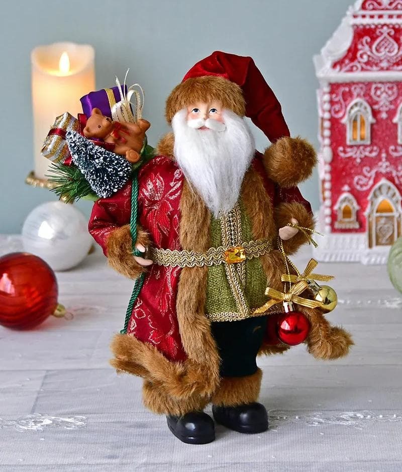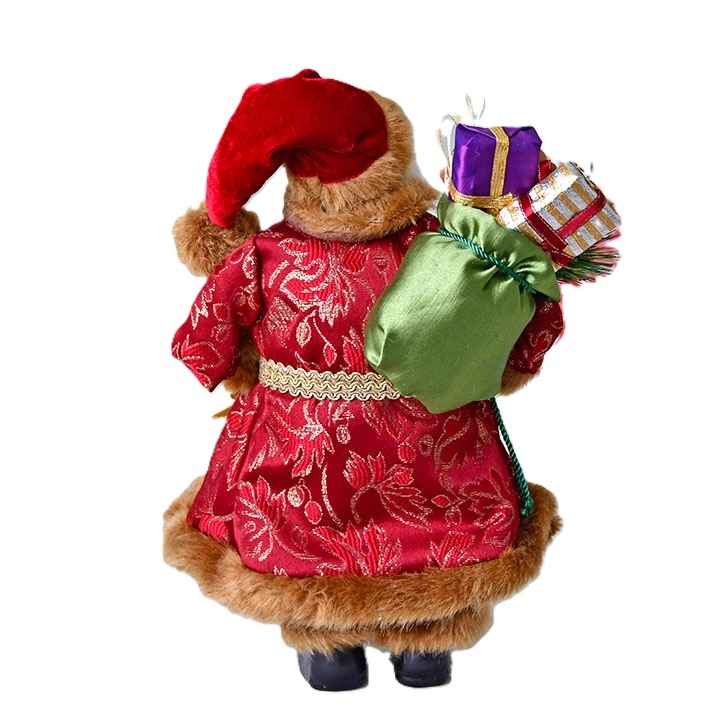 ベロア調のガウンや帽子には毛足の長いファーやブレードを装飾した高級感のあるサンタクロースです。