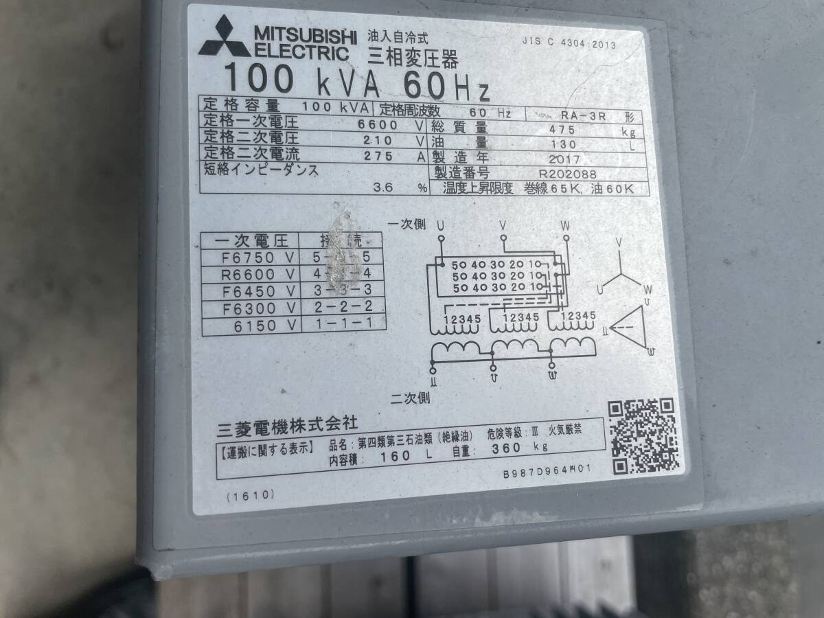 使用状況:2017年製 トップランナー変圧器 【耐圧試験後撤去保管品】