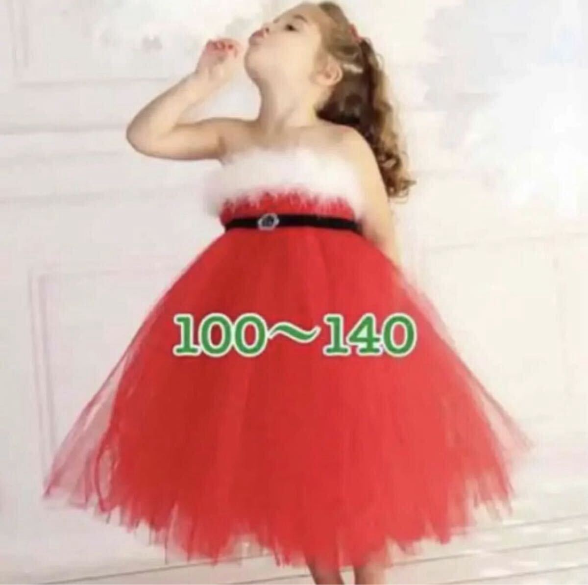新品 120 クリスマス ドレス キッズ 子供 女の子 コスプレ コスチューム 衣装 パーティー ワンピース サンタコスプレ チュール スカート