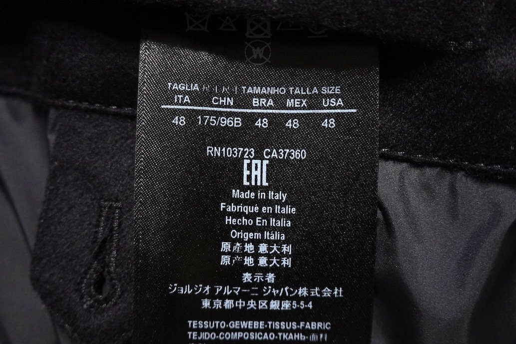 16AW 極美品 GIORGIO ARMANI ジョルジオアルマーニ WATER REPELLENT ピュアカシミヤ ショートコート ダークネイビー メンズ 48 ピーコート