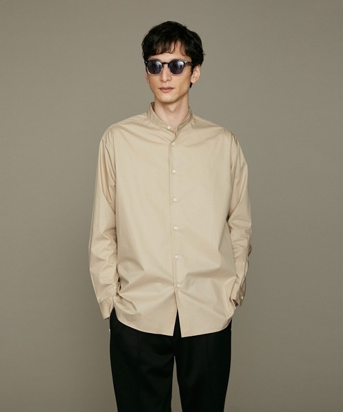 キーワード:シャツ メンズ コットン スタンドカラー ロング丈 長袖 無地