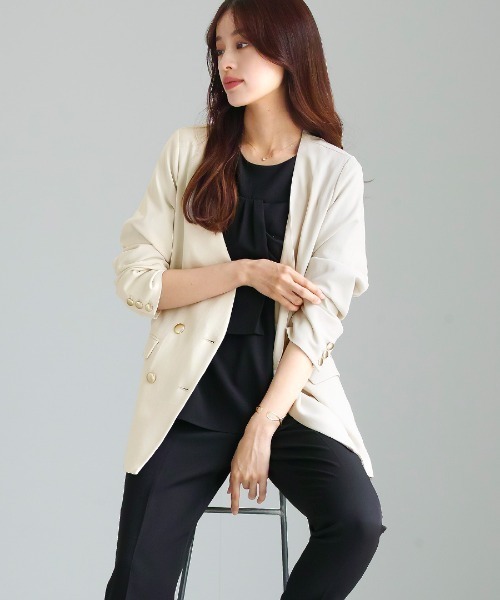 キーワード:ジャケット ノーカラージャケット レディース 無地