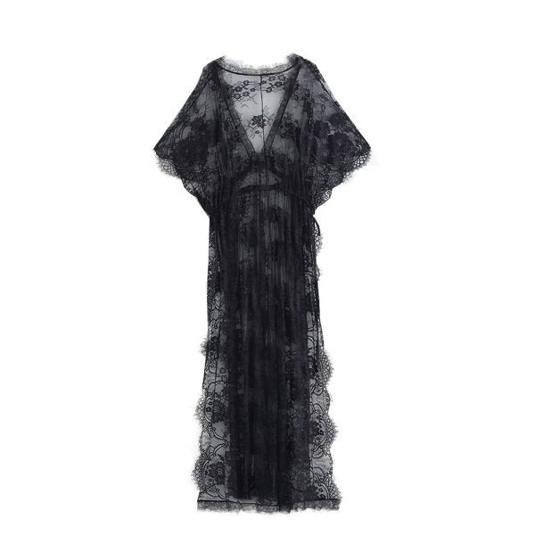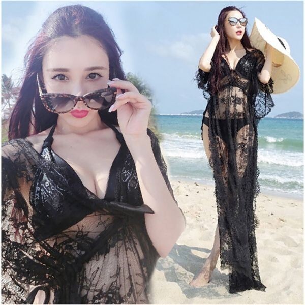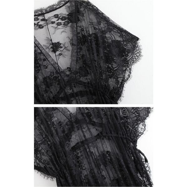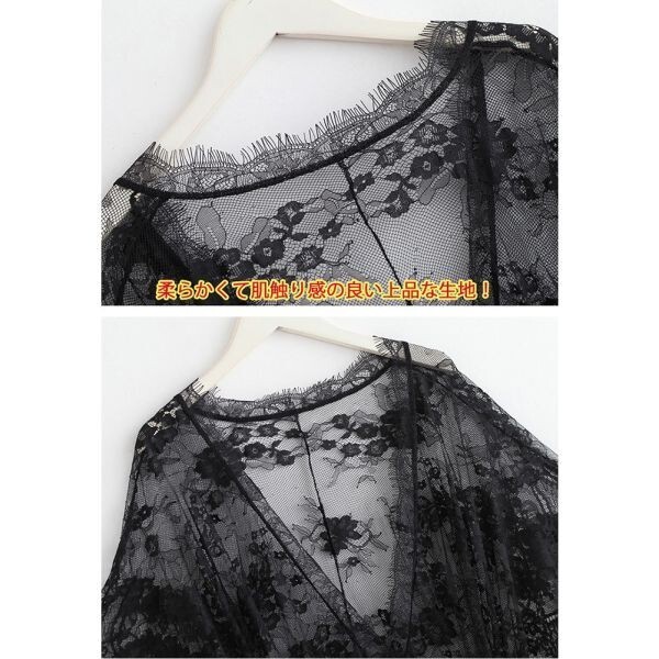 水着カバー レース ブラック ロング 欧米風 花柄 フリーサイズ ブラック水着カバー 総レース ベビードール 下着 ランジェリー