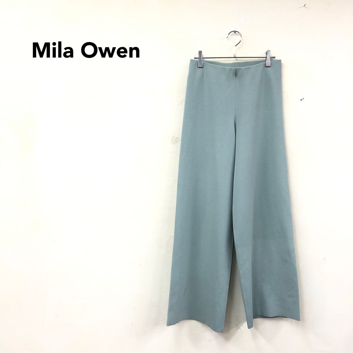 2N1219-K◆良品 MilaOwen ミラオーウェン ニットワイドパンツ◆size1 グリーン 無地 ウエストゴム 裏地あり カジュアル レディース
