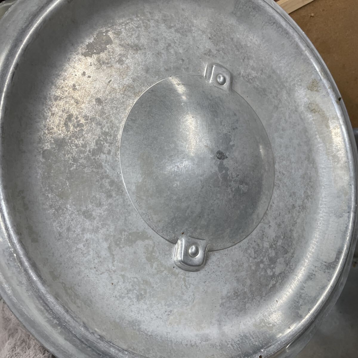 ●アルミ 蓋付 寸胴鍋 ② 直径42㎝ 高さ約40㎝ 業務用 厨房機器 飲食店 スープ鍋 中古●