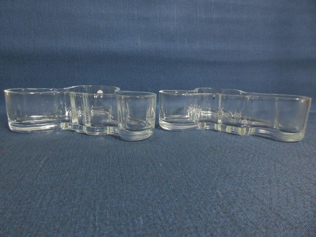 ※未使用のお品物ですが、画像1枚目、向かって左側のボウルに画像8、9、10枚目のようなスレやキズのような跡がございます。画像8枚目は手触りが滑らかなため製造段階での歪みのようなものだと思います。画像9枚目は保管時のスレ、画像10枚目はキズに触れたときのような引っ掛かりを感じないため、ガラス内部にキズができているようです。状態をよくご確認の上、ご入札をご検討ください。