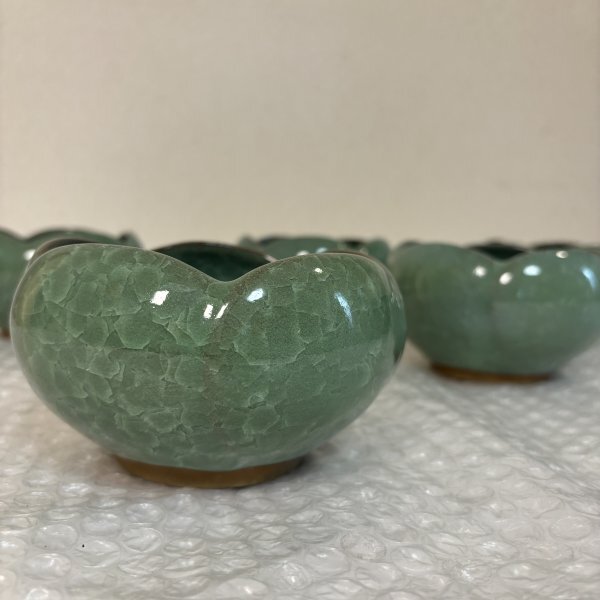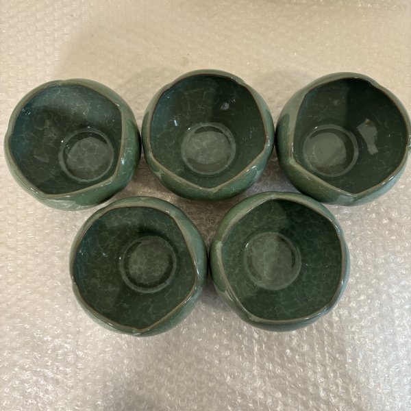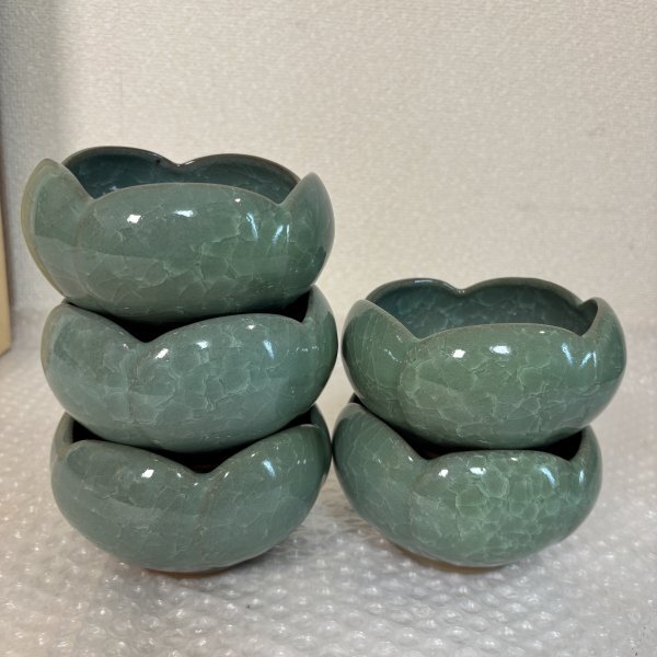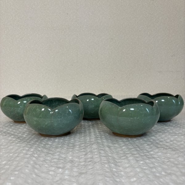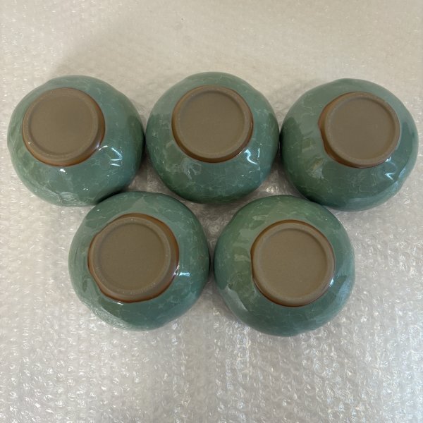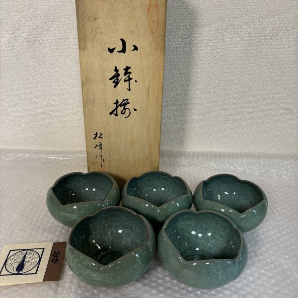 小鉢揃 五客セット 松峰作 5個 緑色 陶器 瀬戸焼 共箱有り ■山912 三