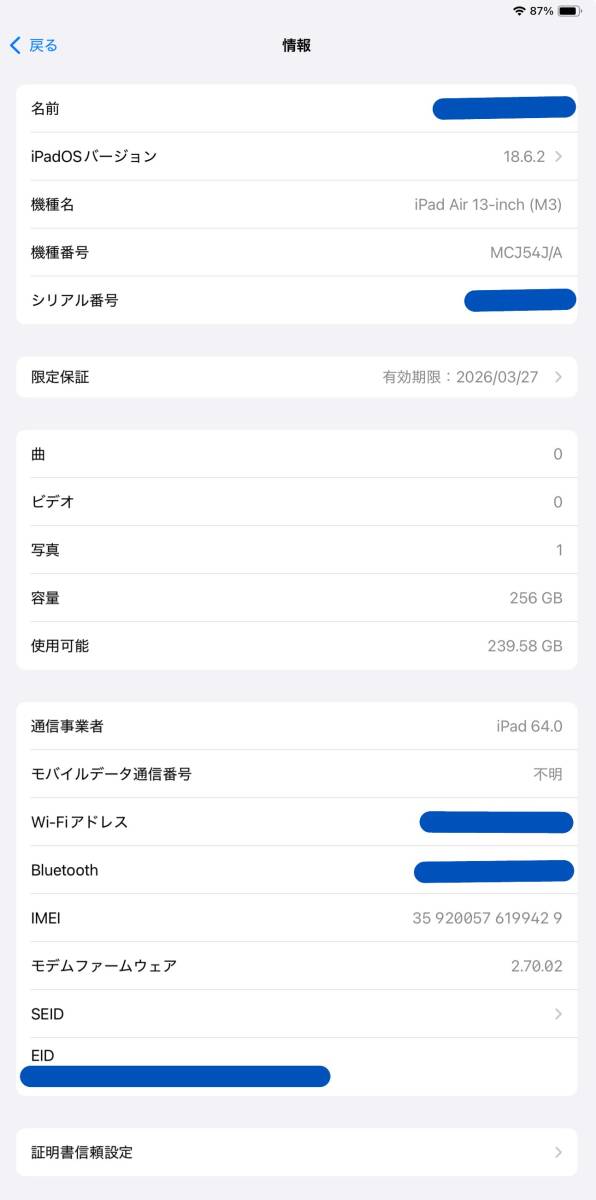 Apple iPad Air 13inch です。