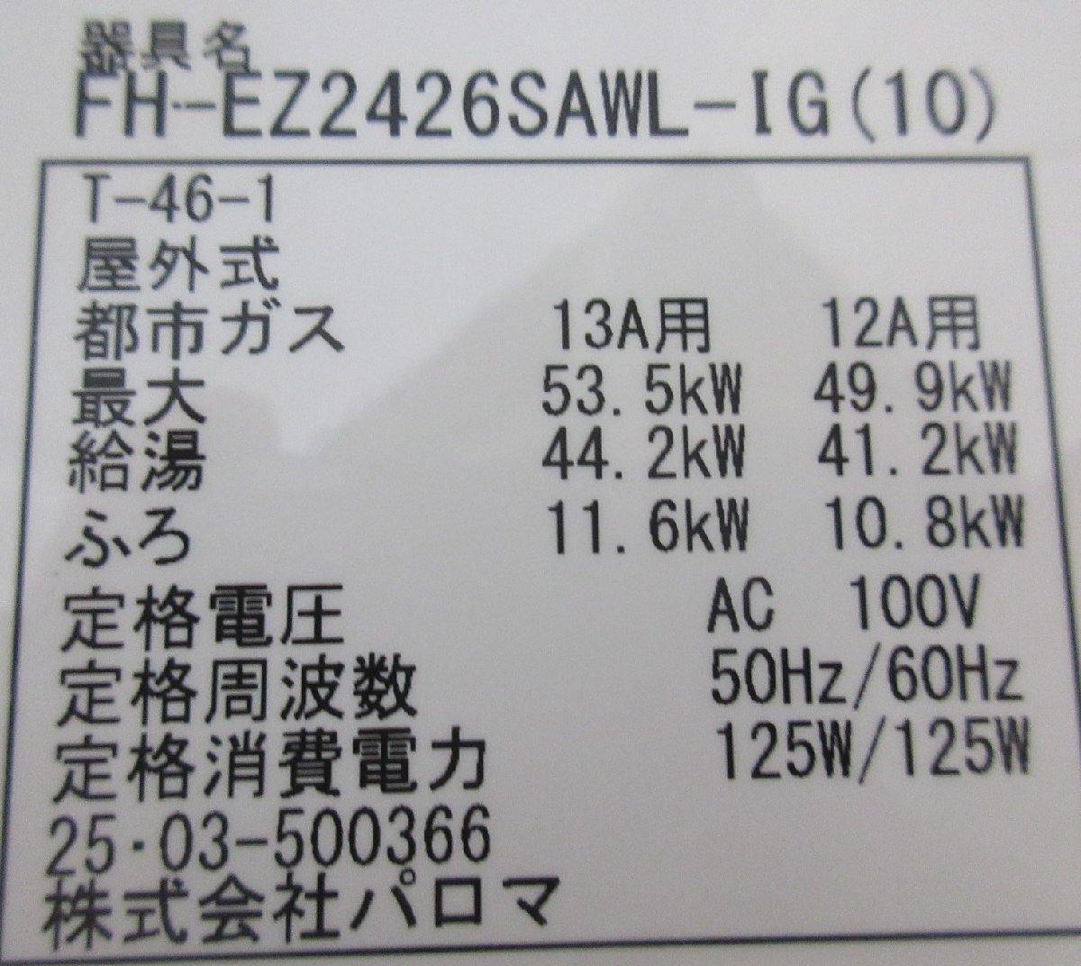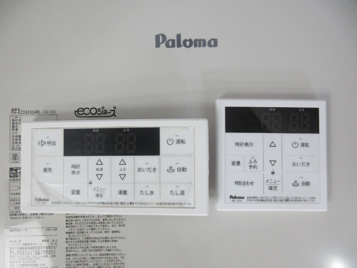 激安中古 25年製 リモコン付 パロマ エコジョーズ 都市ガス 給湯器 オート 追い焚き 24号 屋外壁掛 FH-EZ2426SAWL-IG(10) [9967]