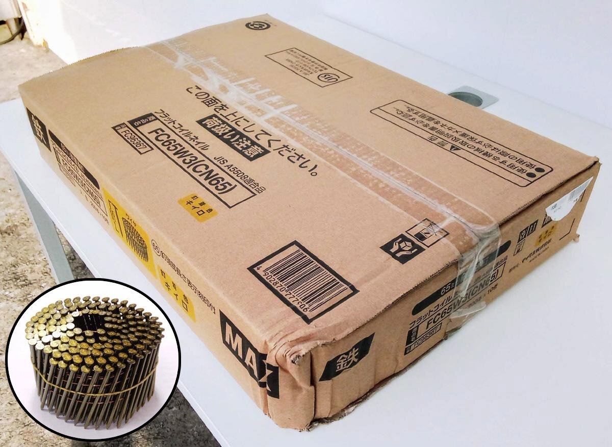 [未開封品] MAX マックス フラットコイルネイル FC65W3(CN65) FC96367 65ミリ 鉄普通釘 着色 黄色 キイロ 200本×10巻 (3) [西那須野店] |