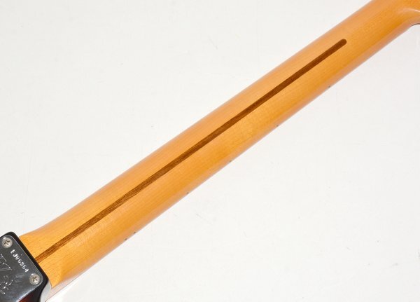 ・ボディ正面、背面に多少のスレ・打痕、キズが見られます。 ・ボディ側面にスレ、キズ、多少の打痕が見られます。 ・ボディ底面にスレ、キズ、多少の打痕、僅かな塗装はがれが見られます。 ・ネックに多少のスレ、小キズが見られます。 ・ヘッドに多少のスレ、キズが見られます。 ・指板に多少のスレ、小キズが見られます。 ・ペグ・ブリッジ・ジャック等金属部分に多少のスレ・くすみ、小キズが見られます。 ・ピックガードにスレ、キズが見られます。 ・ピックアップに多少のスレ、小キズが見られます。 ・ノブ、セレクタースイッチに多少のスレ、小キズが見られます。 ・ネックプレートに多少のスレ、小キズが見られます。 ・ケースにスレ、キズ、汚れ、金属部分にくすみ・多少のサビが見られます。 全体的に多少のスレ・打痕、キズが見られますが 上記の点以外に特に目立ったキズ、ダメージは見られません。 ネックはほぼストレートの状態です。 (現在の弦高は12Fで、1弦側:約1.0mm、6弦側:約1.5mm) 重量:約3.4kg、ナット幅:約42mm、スケール: 約646mm |