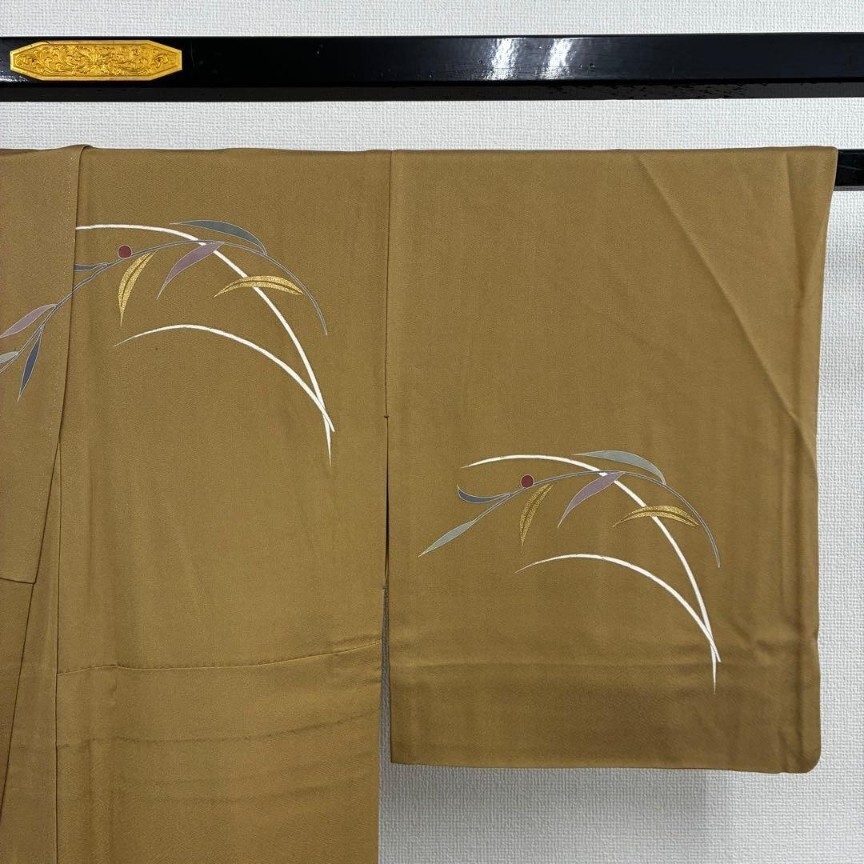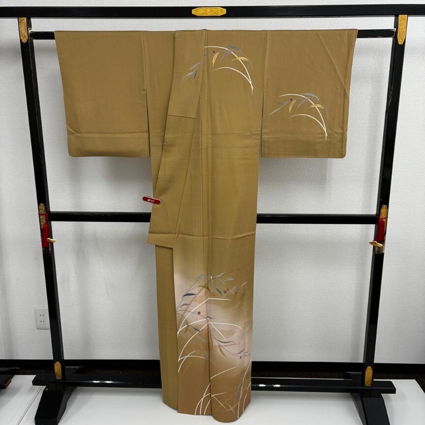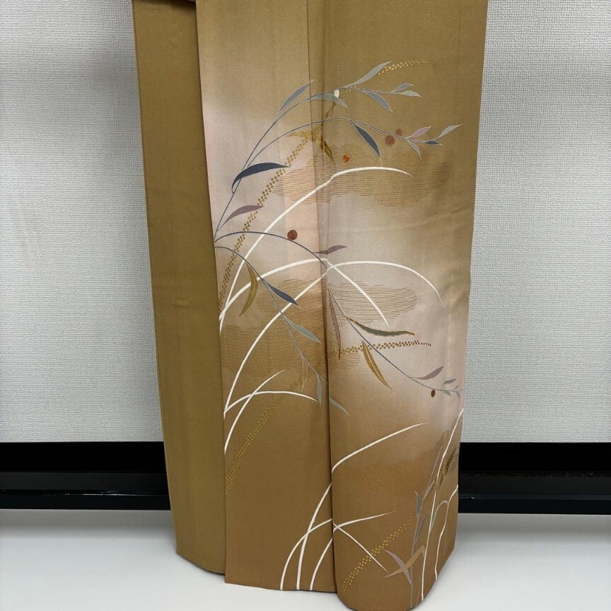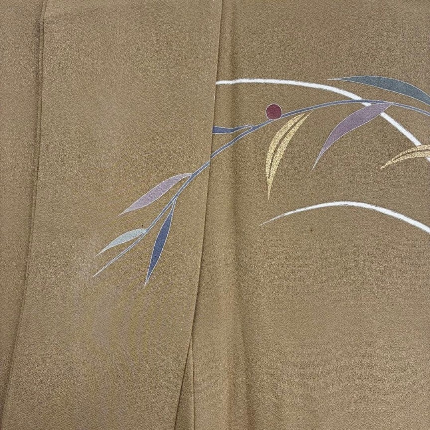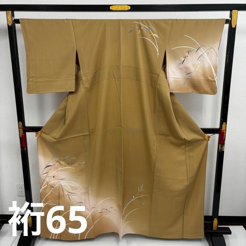 【楓】単衣 付け下げ 裄65 金駒刺繍 上品なデザイン 紋なし KU-8696