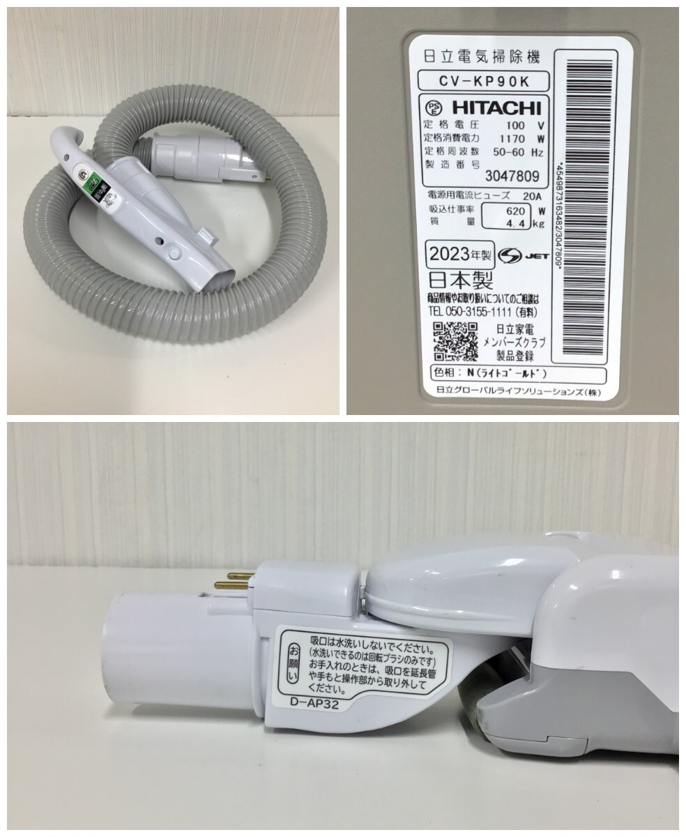 中古品 HITACHI CV-KP90K かるパック 動作確認・簡易清掃済み キャニスター 紙パック 2023年製 日立 掃除機【AJ-0828】