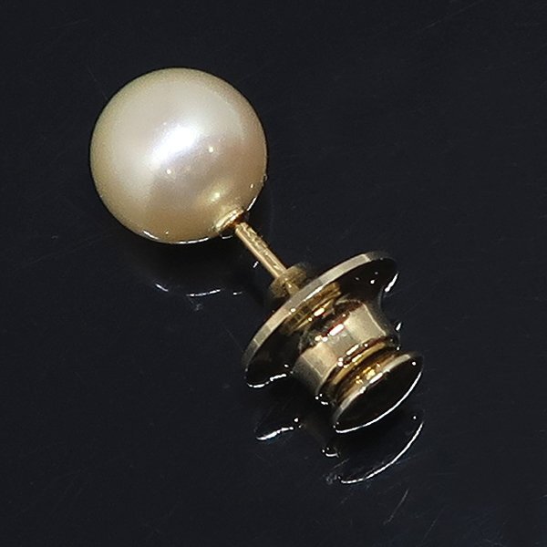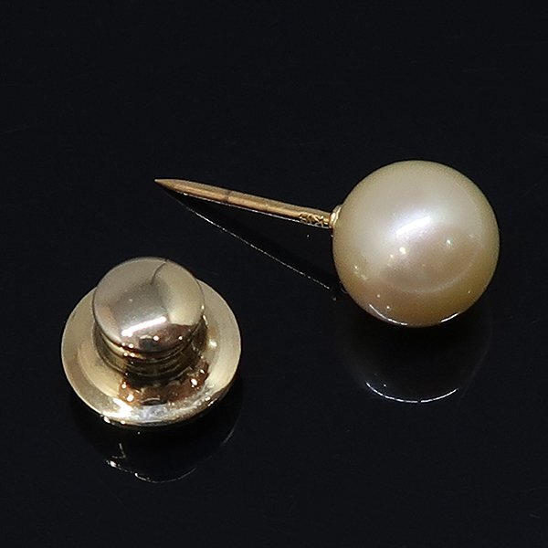 DKG★送料無料★ 美品 K18 ゴールデンパール タイタック ゴールデン パール タックピン 真珠 9.3mm 真珠タイタック パール タックピン