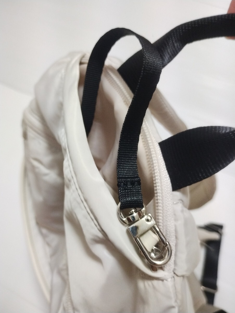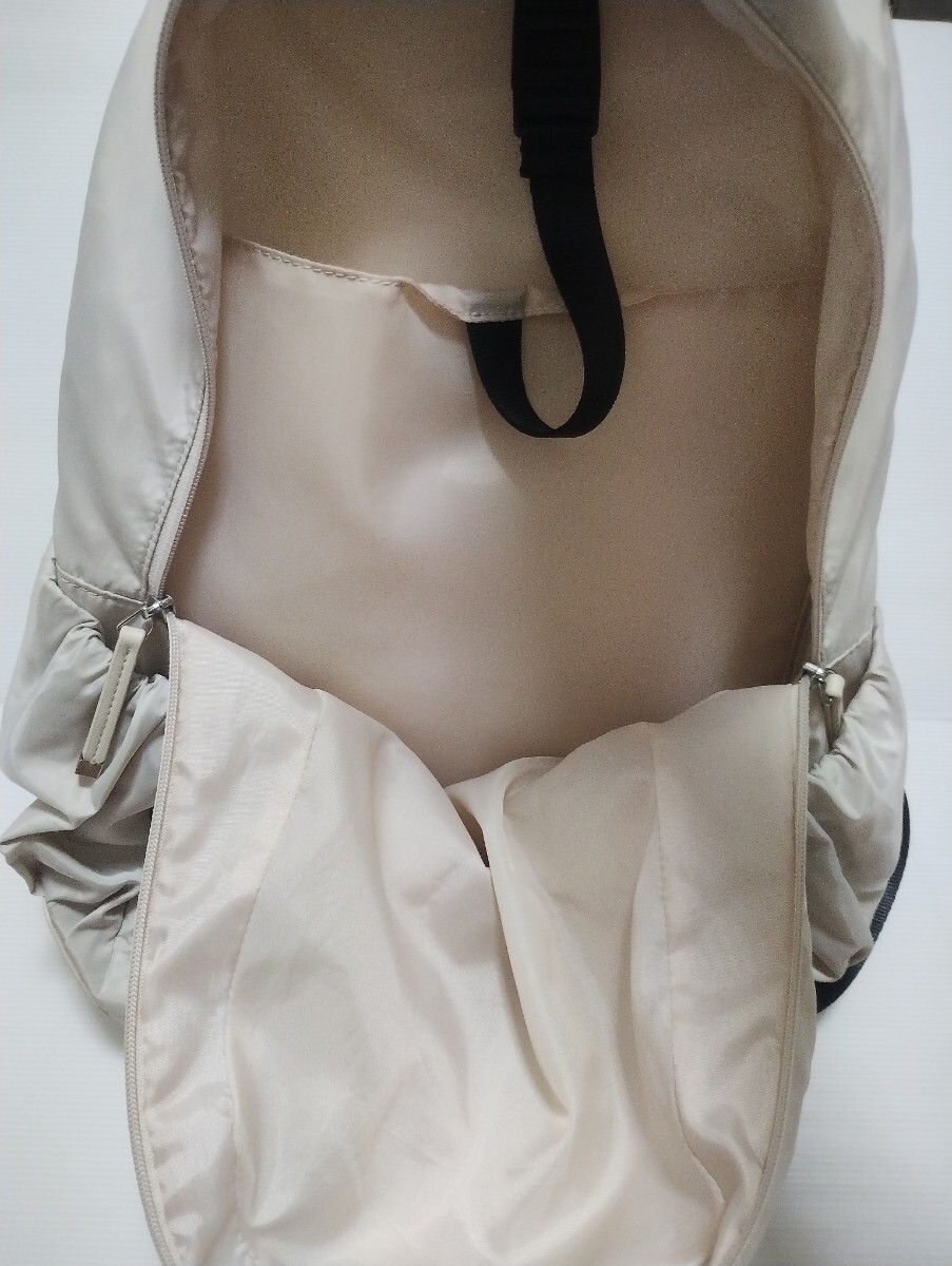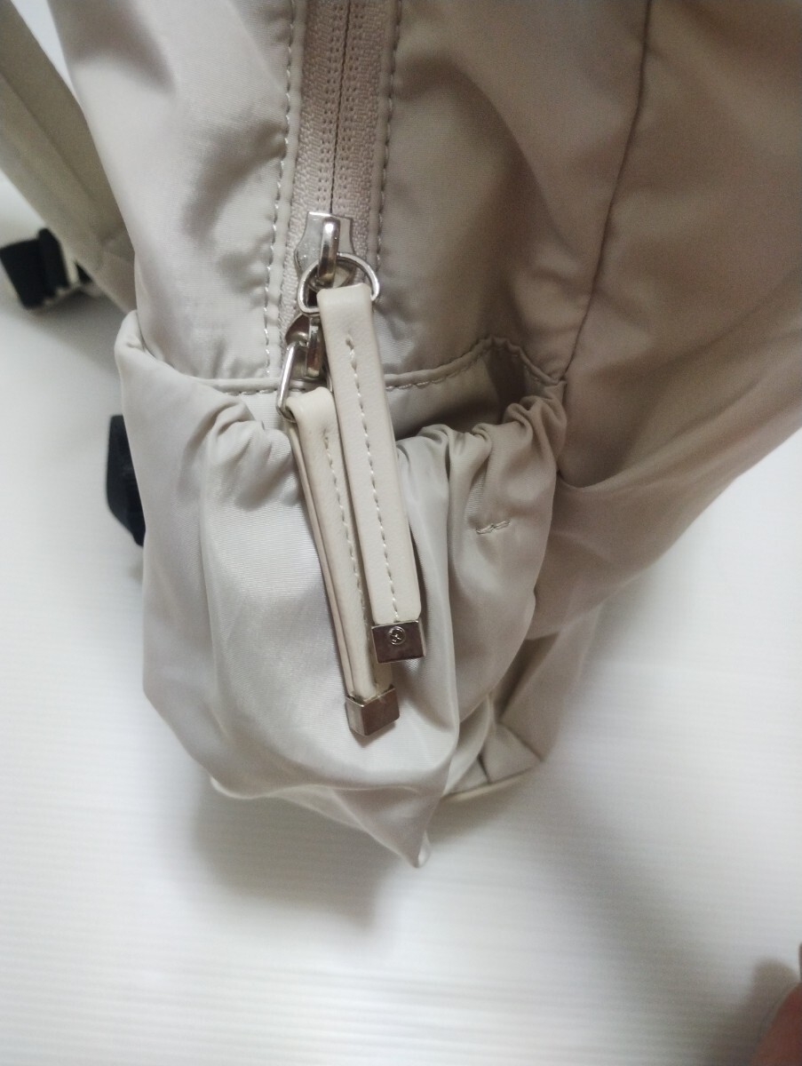 ナイロンはリサイクルポリエステルを使用。ショルダーのクッションを厚く、太くしてより肩の負担を減らす工夫も施しています。また裏側にはキャリーケースに取り付けられるようなバンドを追加しており、より様々なシーンで便利に使えるようにしました。