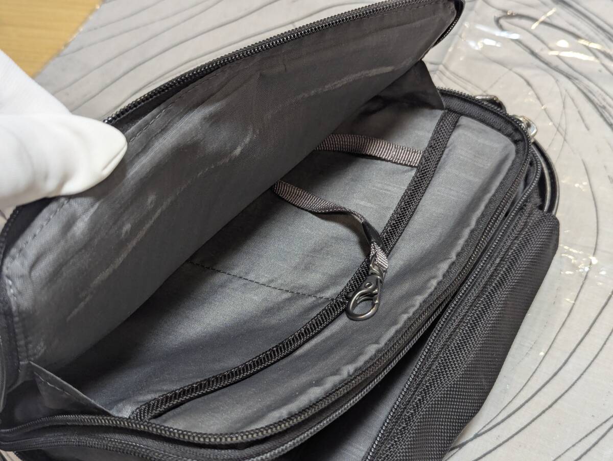 内外とも傷、汚れなどの目立つダメージの見当たらない良い状態ですが、ジップの金具に塗装剥げがございます。