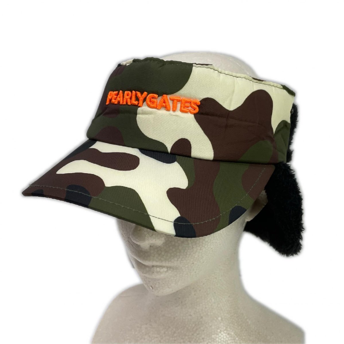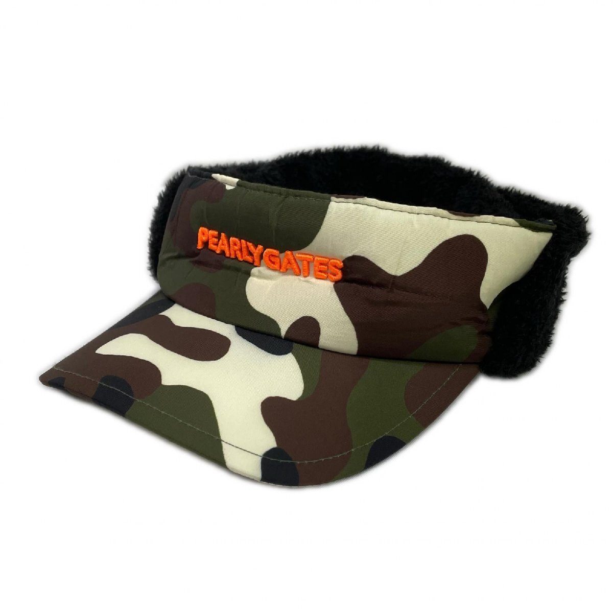 coco 中古 パーリーゲイツ PEARLY GATES サンバイザー ブラック×カモフラ 迷彩 2WAY 耳当て付き レターパックプラス発送可 K017384