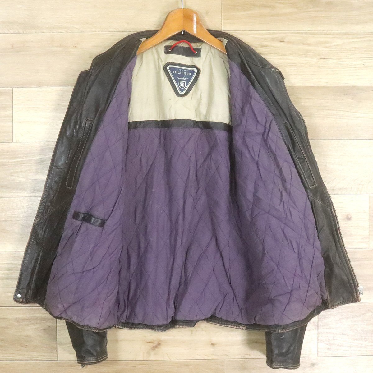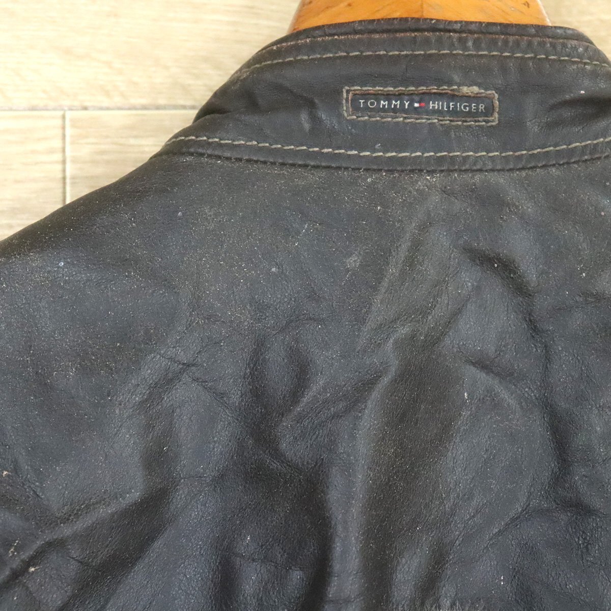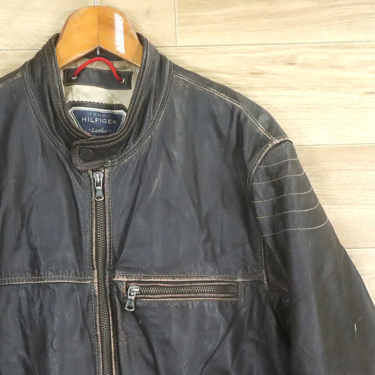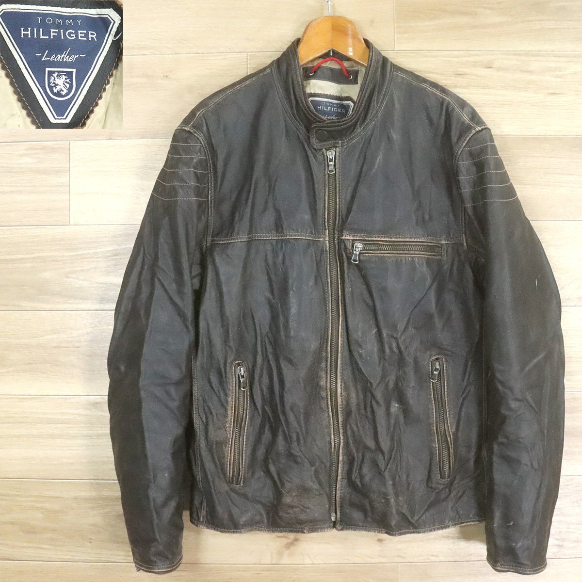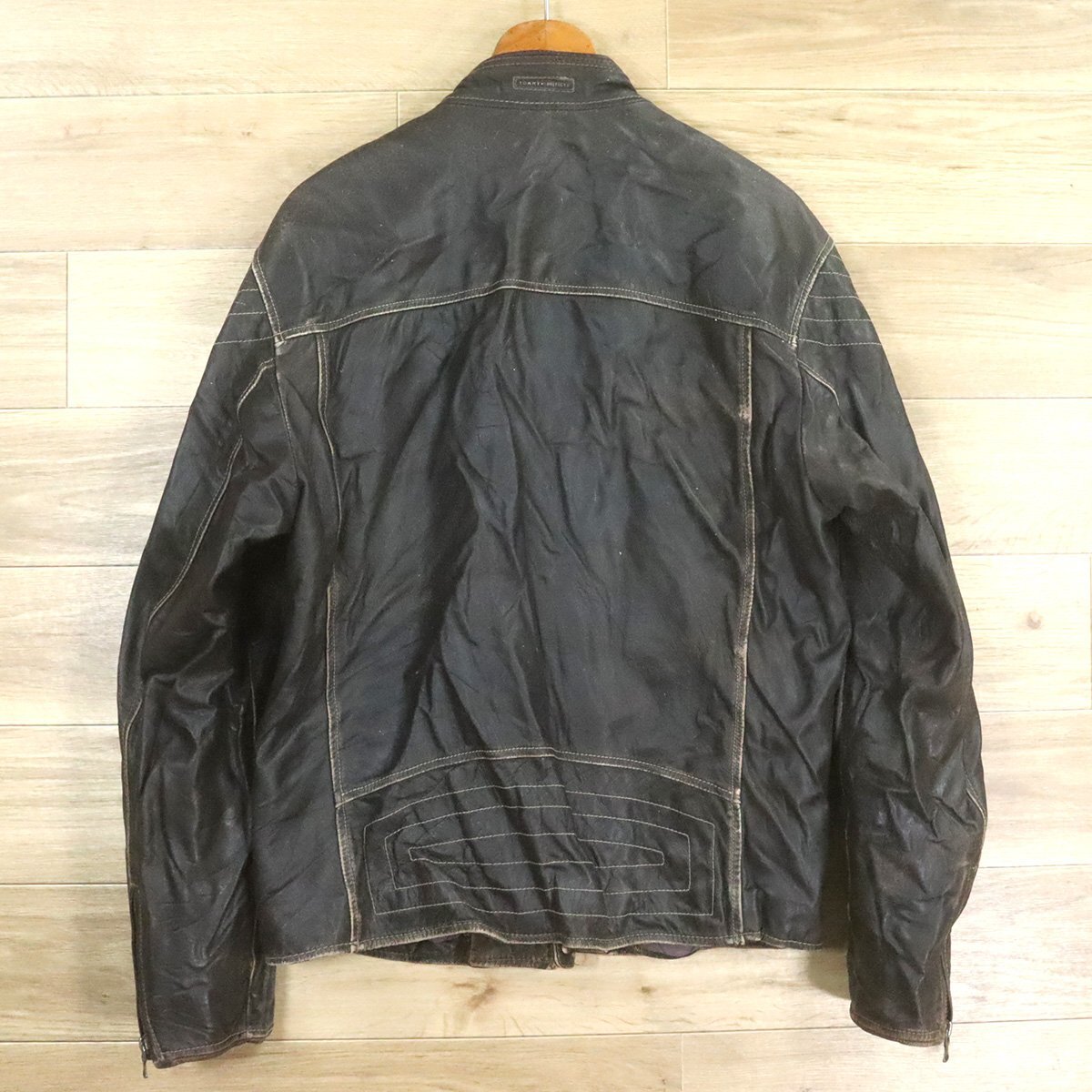 %8D/O9.23-4 TOMMY HILFIGER  トミー ヒルフィガー シングルライダースジャケット 本革 レザージャケット 革ジャン 皮ジャン