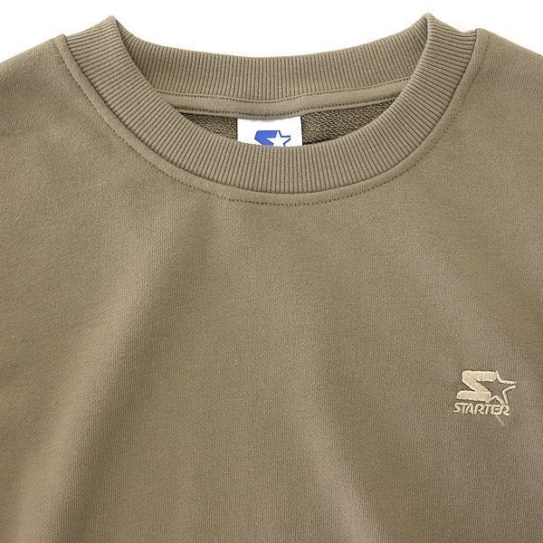 【STARTER(スターター)】 スポーツウェアとポップカルチャーを融合した先駆けのブランドとして知られる、アメリカのファッションブランド。 80年代にはブランドとして初めて、NFL、MLB、NHL、NBA、などのプロメジャーリーグと提携し、またNCAA(全米大学体育協会)を通じ120もの大学とも提携。 90年代には一流のプロアスリートやヒップホップ・映画・テレビ業界の著名人とコラボレートし、世界初のクロスオーバーブランドとなりました。 STARTERのチームジャケットは今でも多くのファンの憧れであり、80・90年代のスポーツシーンを象徴する伝説のアイテムとなっています。 -------------------- ベーシックなデザインで、スポーツ、ストリート、カジュアルにもなじむクルーネックトレーナーです。 伸縮性の良い裏毛スウェット素材を使用しており、動きやすくて羽織りやすく、ロングシーズンで着用が可能です。 胸と袖に施された同色のブランドロゴ刺繍が、さりげないアクセントになっています。 トレンドのビッグシルエットを採用しており、ゆったりとしたこなれ感のある着こなしが楽しめます。 カジュアル、スポーツ、リラックスタイムなど、幅広いシーンで活躍してくれるアイテムです |