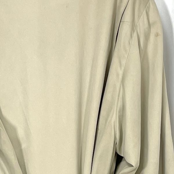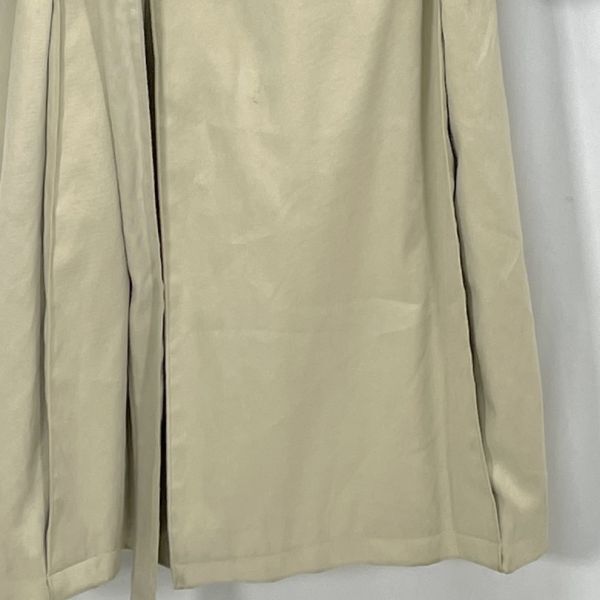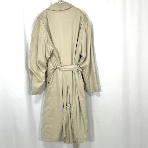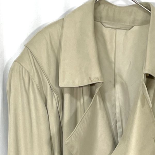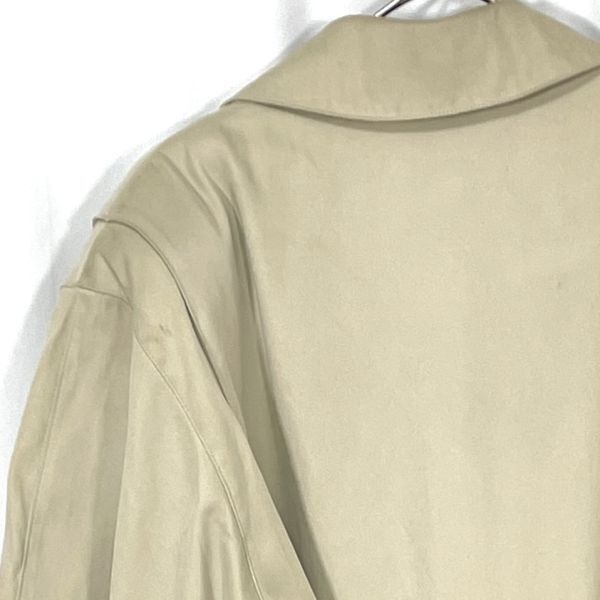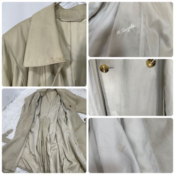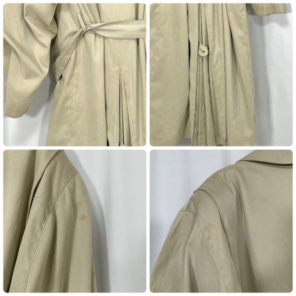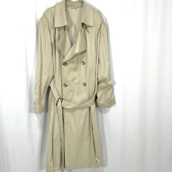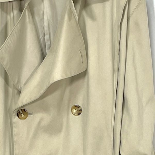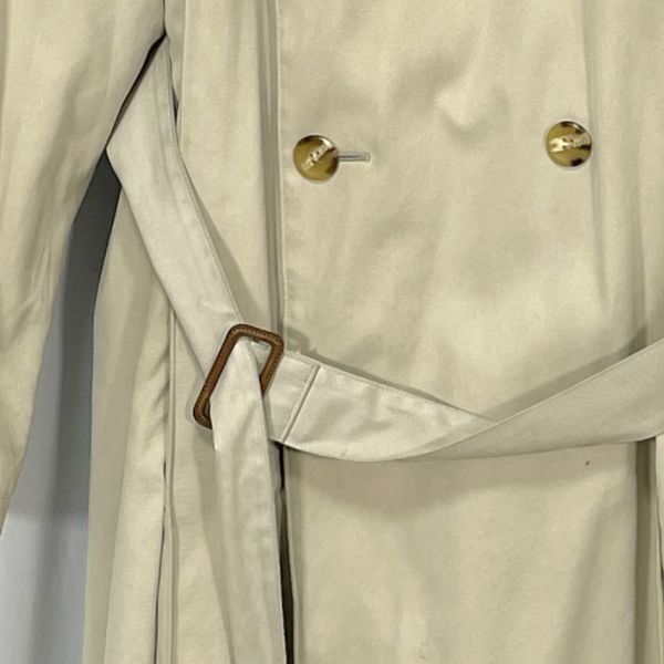 【商品説明】 ご覧いただきありがとうございます。 上品なベージュカラーのトレンチコートです。 クラシックなダブルボタン仕様で、ベルト付きのデザイン。ロング丈でシルエットも美しく、ビジネスからカジュアルまで幅広くお使いいただけます。 裏地にネーム刺繍があり、やや使用感と裏地にシミが見られますが、全体的にはまだ着用いただける状態です。 サイズ(約) 肩幅 50cm 身幅 52cm 袖丈 61.5cm 着丈 123cm カラー:ベージュ系 仕様:ダブルボタン、ベルト付き、総裏地 シンプルながらも雰囲気のある一着です。秋冬のアウターとして活躍します。