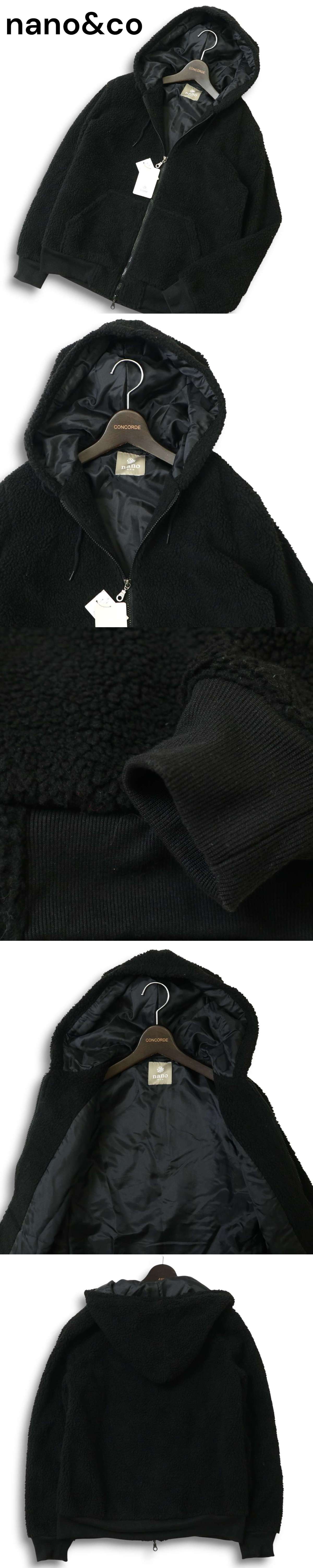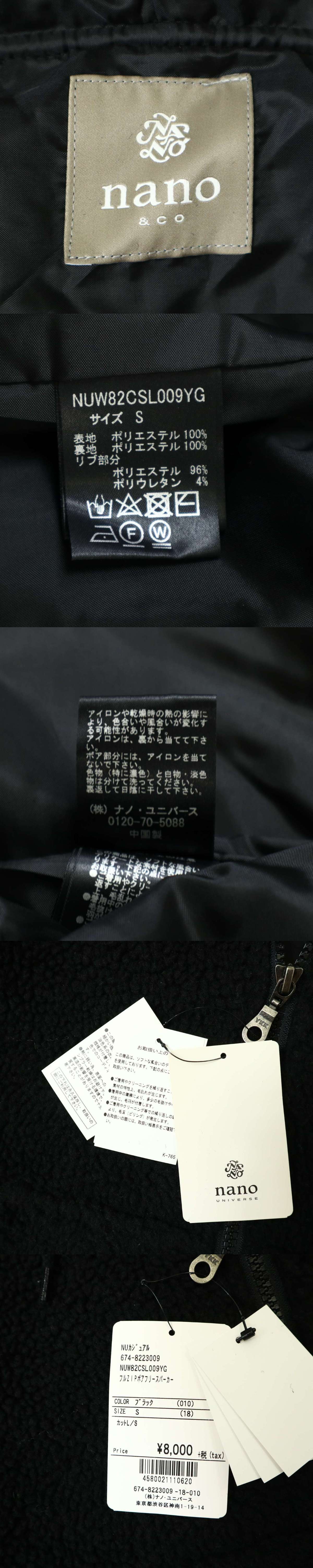 【新品 未使用】 nano&co ナノユニバース 秋冬 フルZIP ボア★ フリース パーカー Sz.S メンズ 黒