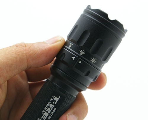 GENTOS TX-350LMはCREE社のLED XP-Gを搭載したシリーズ最新モデルです。MAX350ルーメンの強力な閃光を放ちます。ベゼル下にロータリー式のモードセレクターがあり、4段階の調光+ストロボ+SOS点滅の合計6モードを選択することができます。