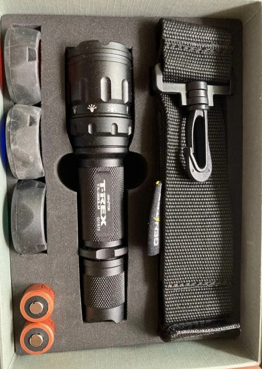 付属品は全て付属、箱に関しては多少スレがある位の超美品です。非常に使いやすいLEDハンディライトです。電池も付属してますが数回点灯させてますので新品ではありません。