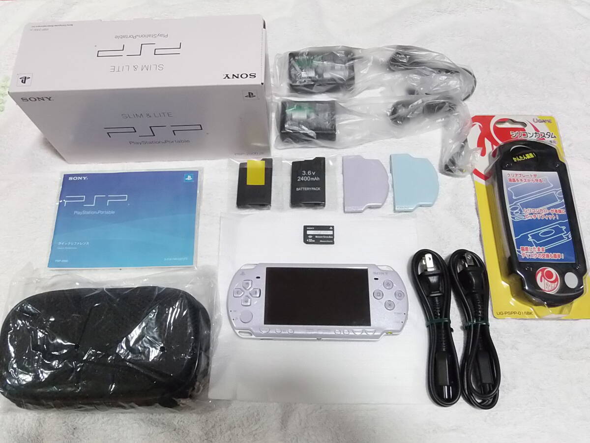 PSP-2000 パープル 新品に近い綺麗な美品 FW3.60 本体は、ほぼキズ無し 液晶画面ヤケ無し バッテリー2個 ケースは未使用 全13点セット