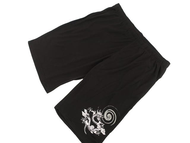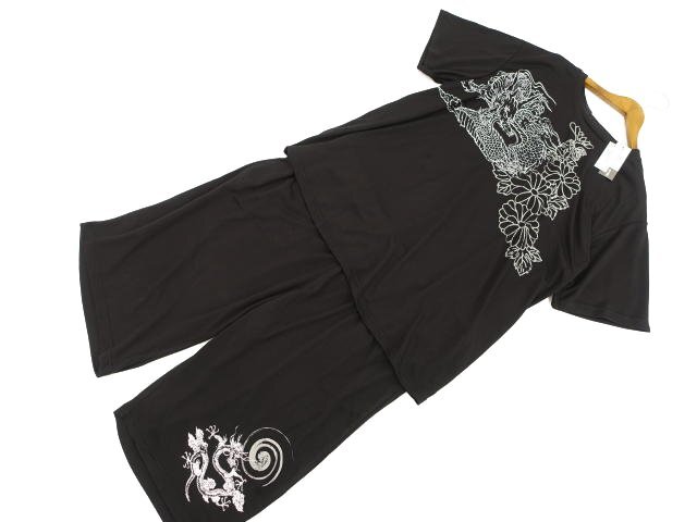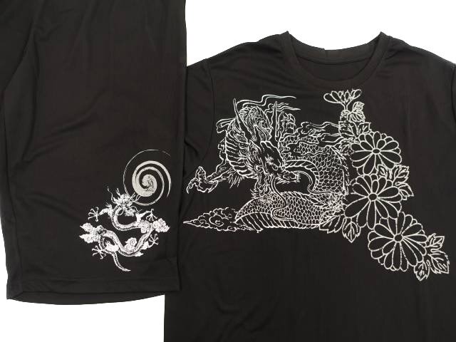 半袖Tシャツ+ハーフパンツ ジャージ上下2点セット 6L ブラック地 ホワイト×グレー 和柄