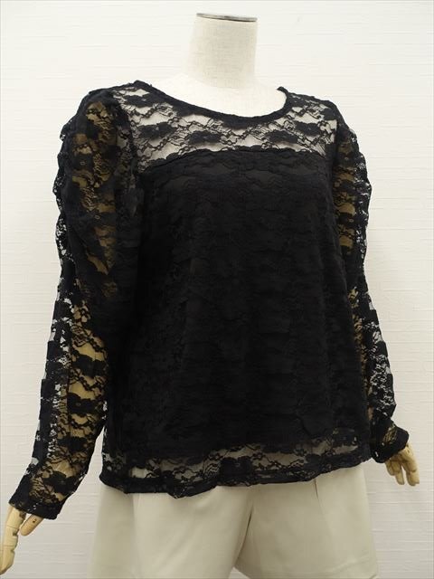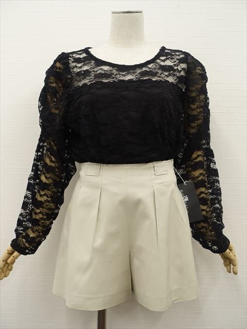 長袖カットソー+キュロットパンツ コーディネート上下2点セット M相当 ブラック×ブラック 花柄/アイボリー フェミニン・ガーリー系 20代