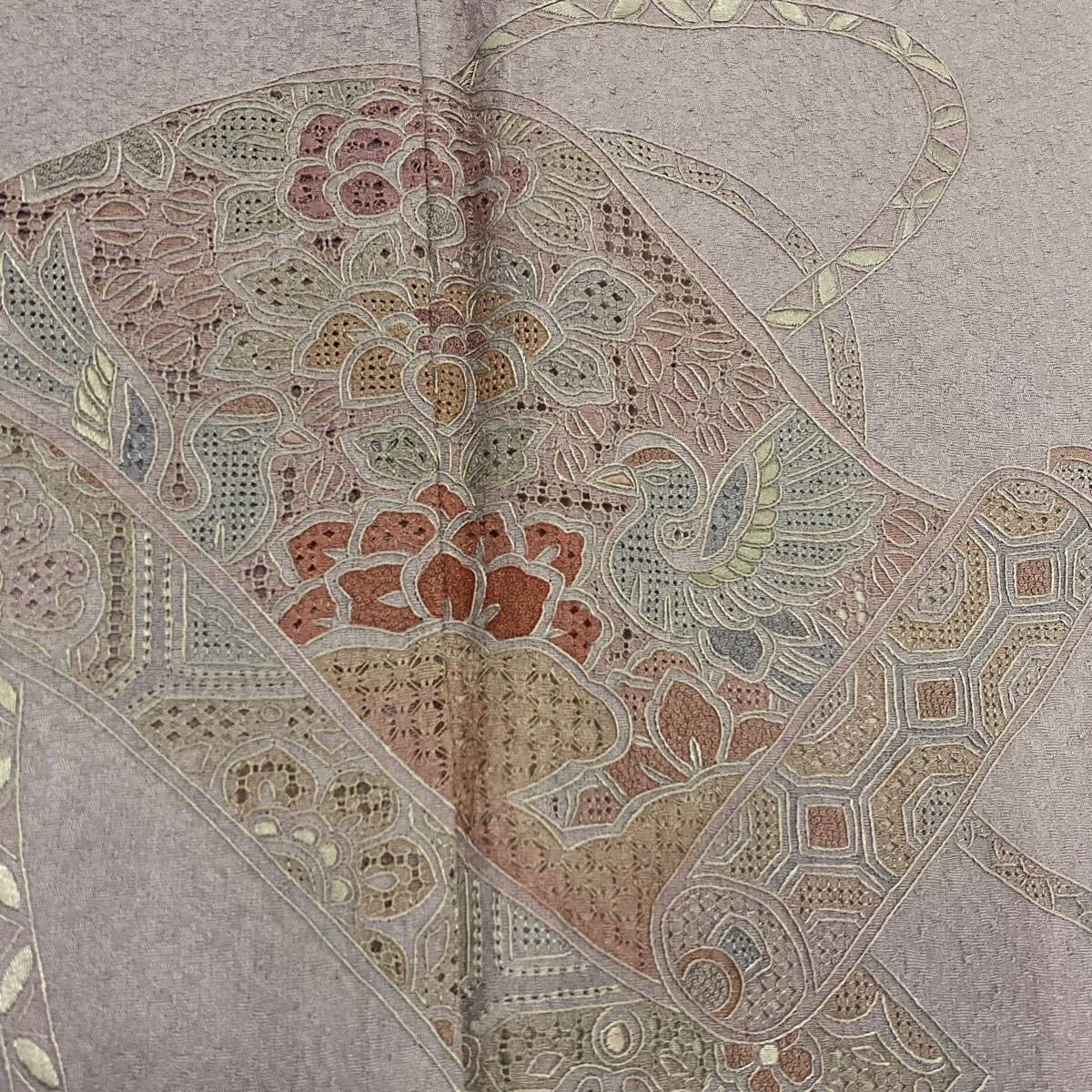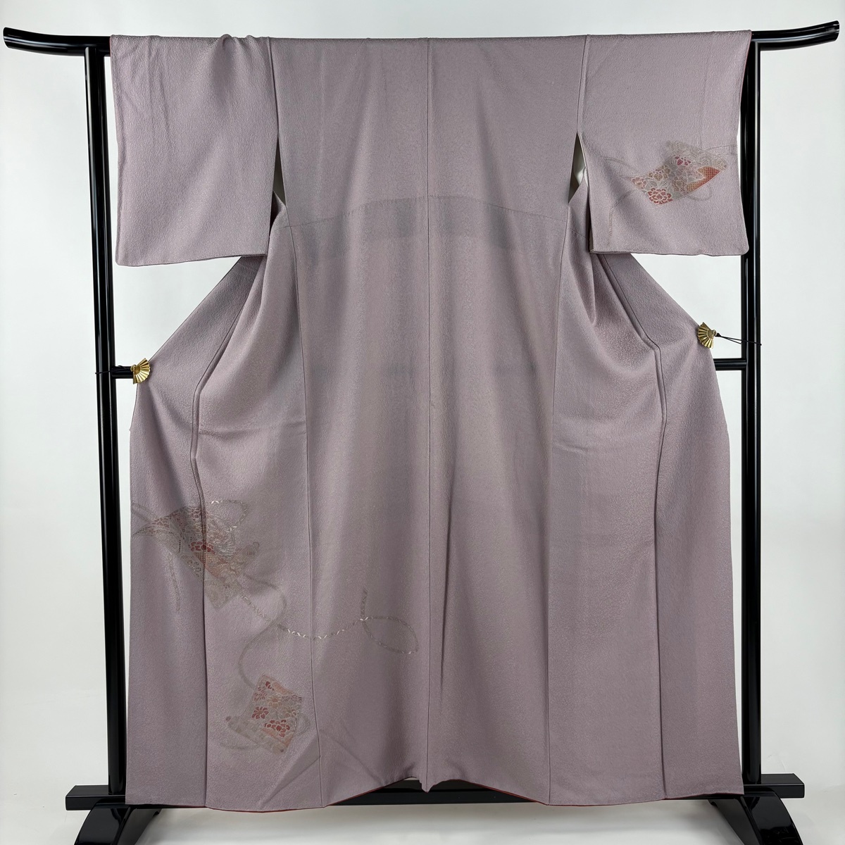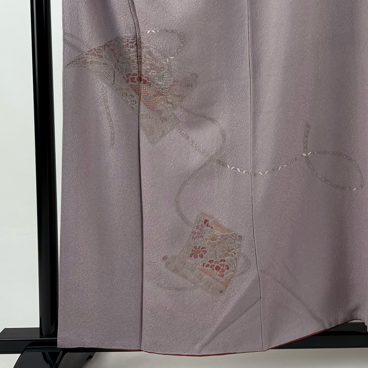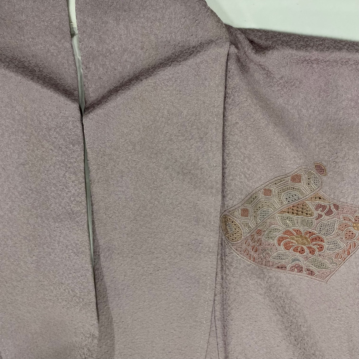 | 付下げ 秀品 巻物 花鳥 刺繍 薄紫 袷 身丈155.5 裄丈64.5 M 正絹 【中古】 |