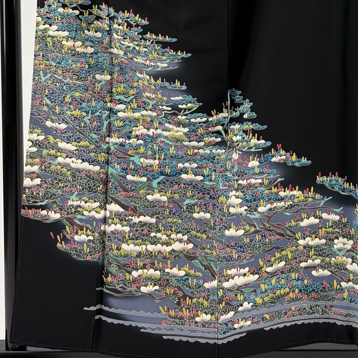| 黒留袖 秀品 杉浦伸 落款 松 霞 ぼかし 黒 袷 身丈157 裄丈62 S 正絹 【中古】 |