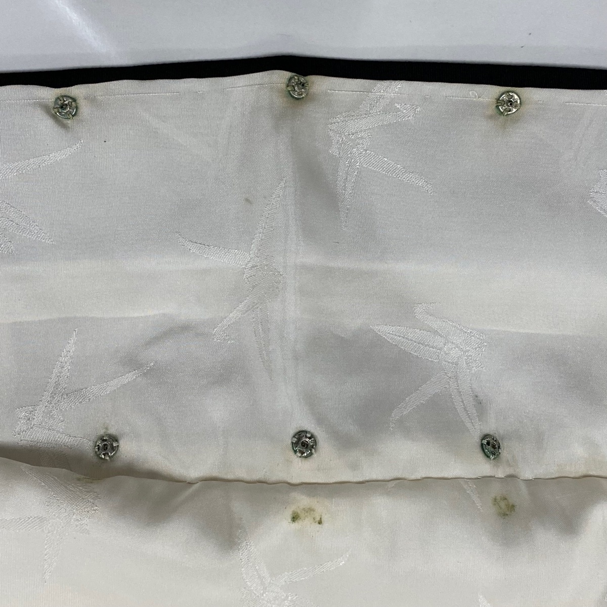 | 加賀友禅作家「杉浦伸」の作品でございます。 結婚式や披露宴などで親族の第一礼装として用いられる黒留袖でございます。 既婚女性が着用する着物で、最も格の高い礼装でございます。 ※身丈・裄丈の縫込みの長さは測っておりません。 表地所々にヤケ、右胸と右衿にシミ、衿周りや両袖口中に薄汚れがございます。 衿裏所々と胴裏所々にホックシミ、ホック周りも変色、比翼の八掛所々に下糸の変色がございます。 リユース品としては良い状態で、まだまだご活用頂けると思われます。 ※なお、厳しく商品の状態確認を行っておりますが、記載の汚れ以外にも見落とし箇所がある可能性がある旨ご了承いただけますと幸いです。 沢山の商品の中からご覧いただき誠にありがとうございます。 |