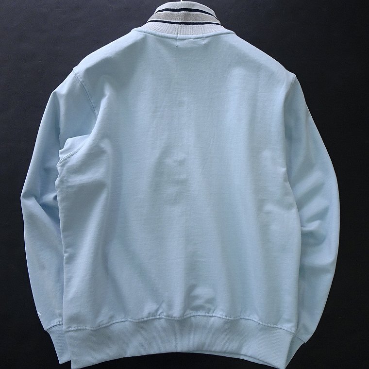 Lサイズ(画像は別サイズを使用) チェスト96~104 ※商品に記載されたサイズ・寸法です※ 肩幅48cm 身幅57cm 袖丈61cm 着丈67cm ・本体:綿100% ・袖口リブ部分:綿95% ポリウレタン5% 77(SAX) |